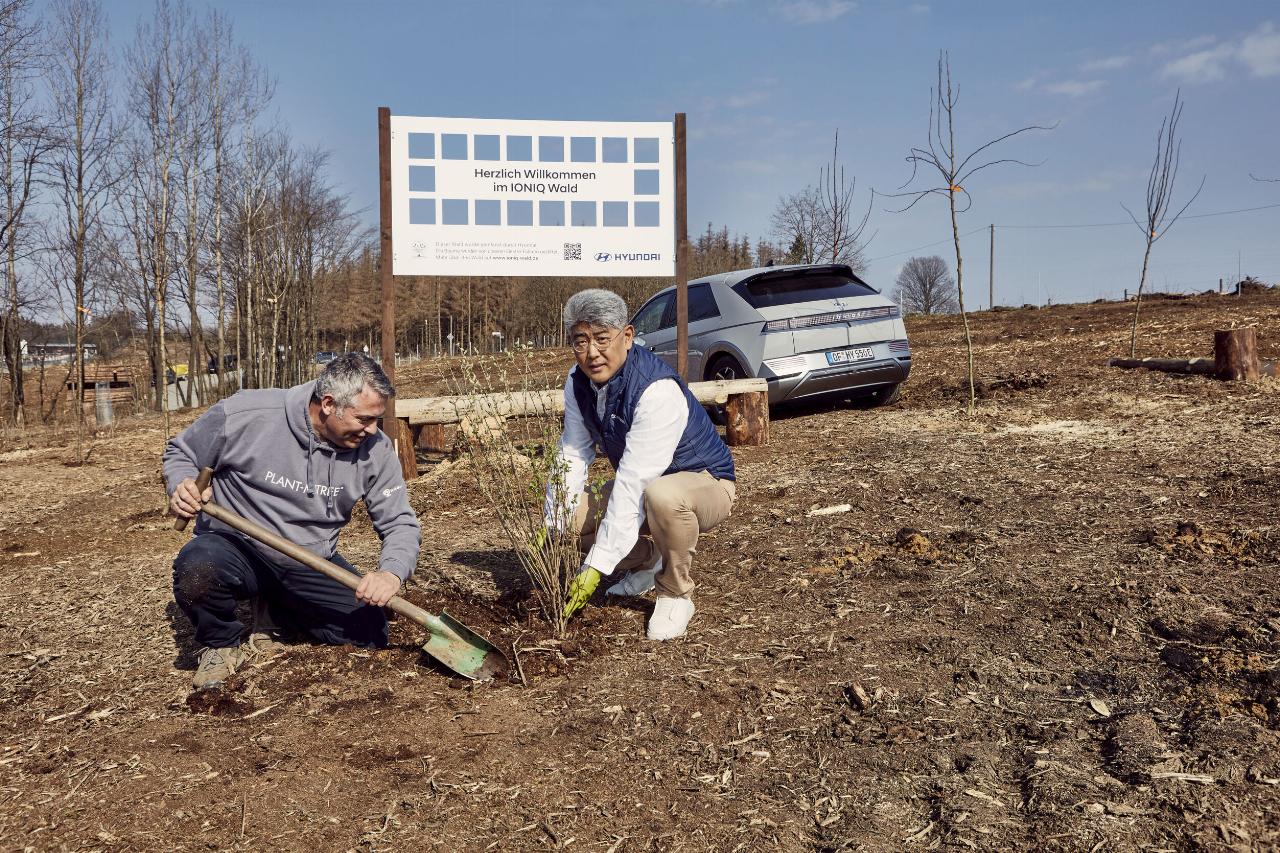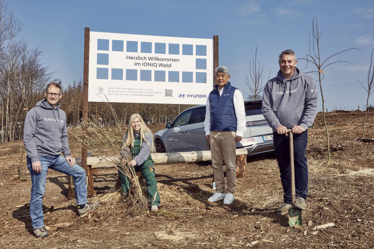 Der Ioniq-Wald entsteht in Nordrhein-Westfalen in der Nähe von Lüdenscheid an der A 45. Neben Eichen und Lärchen werden Buchen, Birken, Kiefern und Douglasien den Mischwald bestimmen, der eine Monokultur ersetzt. Dabei erhält jeder Käufer seinen individuellen Baum und wird zum Paten. Der Importeur hat über dem Waldstück eine Kamera angebracht, so dass die Ioniq-Besitzer über das Internet dem Wald beim Wachsen beobachten können. (aum)
