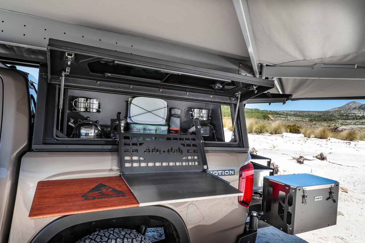 Basis ist ein schwarz lackierter Amarok Panamericana mit Allrad, Differenzialsperre hinten, 177 kW Leistung, einem 3,0L-V6-TDI-Motor und bis zu 600 Newtonmetern Drehmoment. Auch Änderungen an Fahrwerk, BF-Goodrich-AT-Bereifung und Styling gehören zu den Umbauumfängen. Zusätzliche LED-Beleuchtung auf dem Dach oder Zusatzscheinwerfer am Frontend, etwa für Fahrten durch Skandinavien, sind ebenfalls montiert.