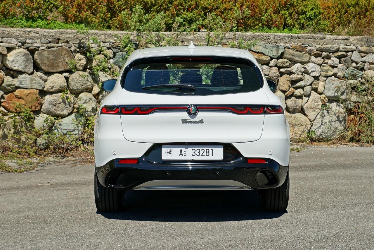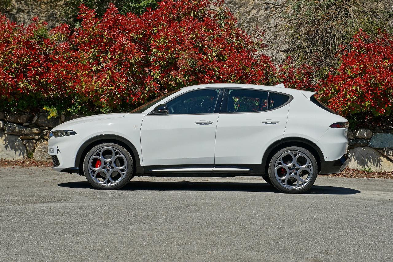 Ein positives Kapitel ist das Fahrwerk. Der Tonale hält sauber die Spur und erlaubt hohe Kurvengeschwindigkeiten, und die sehr direkte Lenkung ermöglicht es, ohne Umgreifen Kehren zu fahren. Das Auto wirkt steif und solide, das Handling ist deutlich sportlicher als der Klassendurchschnitt. Die von Brembo zugelieferte Bremsanlage packt bissig zu und ist äußerst standfest.