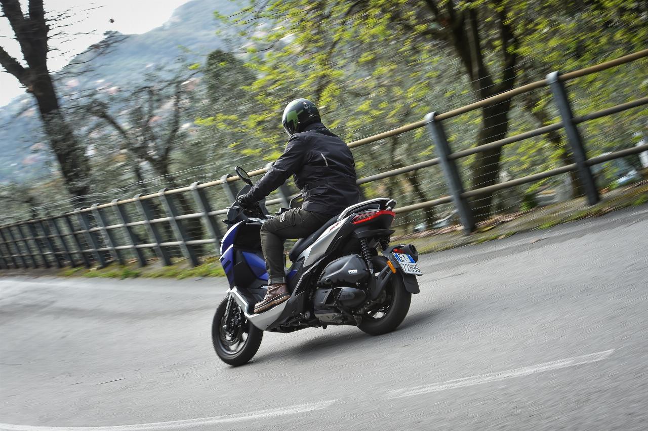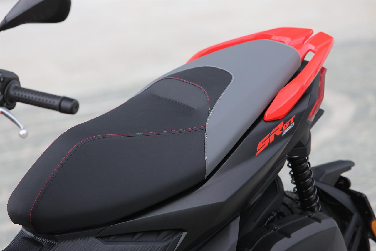 Leichtfüßige 144 Kilogramm wiegt der SR GT 125, unwesentliche vier Kilo mehr der SR GT 200. Die stufenlose Automatik setzt beide zügig in Bewegung. 12 Nm bei 6500 Umdrehungen pro Minute schickt der 125er an die Triebsatzschwinge, 16,5 Nm bei 7000 U/min sind es beim 200er. Die maximale Leistung beträgt hier 18 PS (13 kW) bei 8500 U/min und erfordert Führerscheinklasse A2. Der 125er leistet A1- und B196-konforme 15 PS (elf kW) bei 8750 Touren.