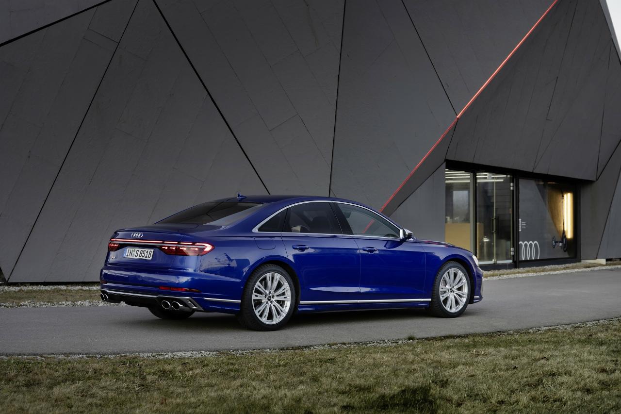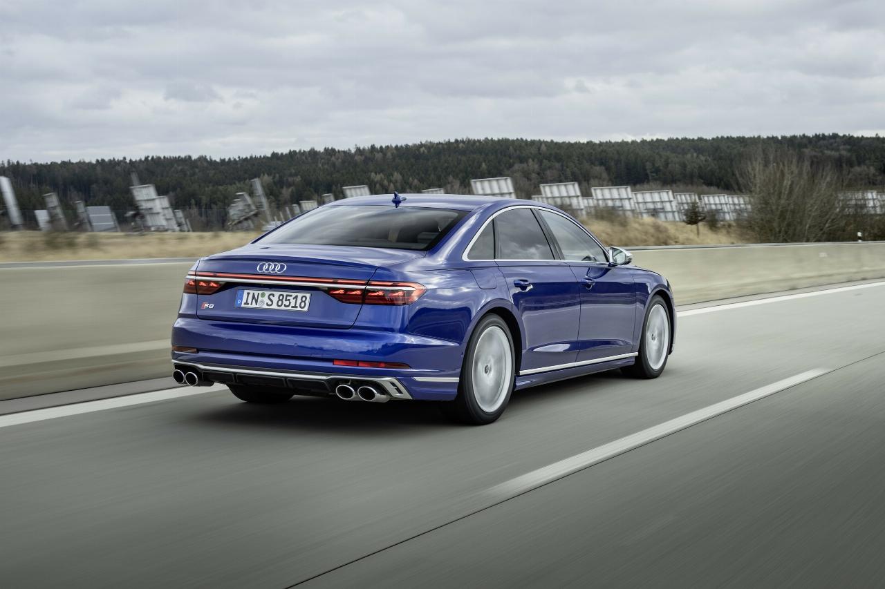 Der turboaufgeladene 4,0-Liter-V8 leistet im S8 stolze 571 PS (420 kW), die bei 6000 Umdrehungen in der Minute anliegen. Das maximale Drehmoment von 800 Newtonmetern kann auf einem Plateau von 2050 bis 4500 U/min abgerufen werden. Damit liegt der S8 deutlich oberhalb des A8 60 TFSI, der aus dem gleichen Motor 460 PS (338 kW) und 660 Nm holt. Im direkten Vergleich tritt der S8 nochmals spürbar kräftiger an, insbesondere bei Autobahntempo. Der äußerst druckvolle Antritt des S8 wird untermalt durch eine dezent grollende Klangwolke. Der Spurt von 0 auf 100 km/h dauert nur 3,8 Sekunden, bei 250 km/h wird allerdings unbarmherzig abgeregelt. Der Zyklusverbrauch von 10,7 Litern pro 100 Kilometer, der sich übrigens leicht unterschreiten lässt, kündet von der Effizienz des Aggregats, das über eine automatische Zylinderabschaltung verfügt.