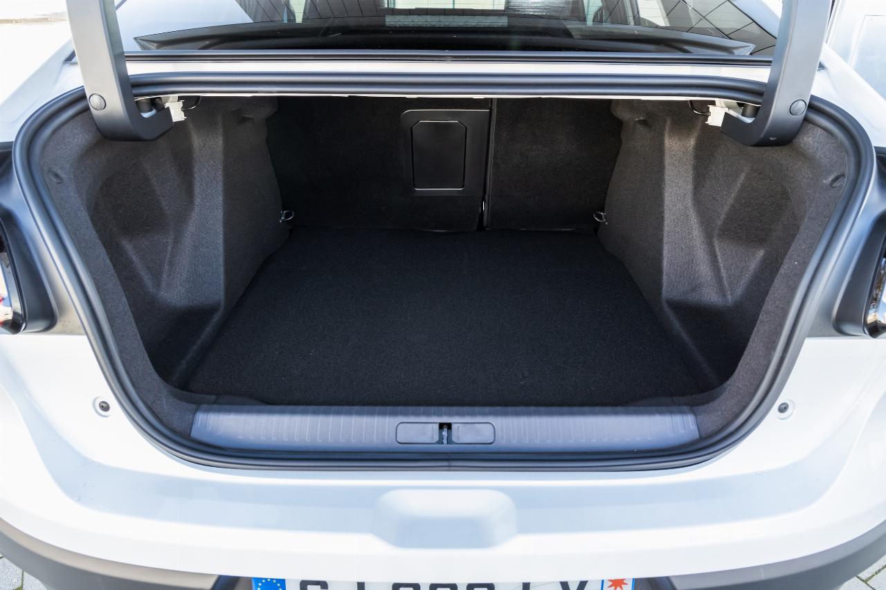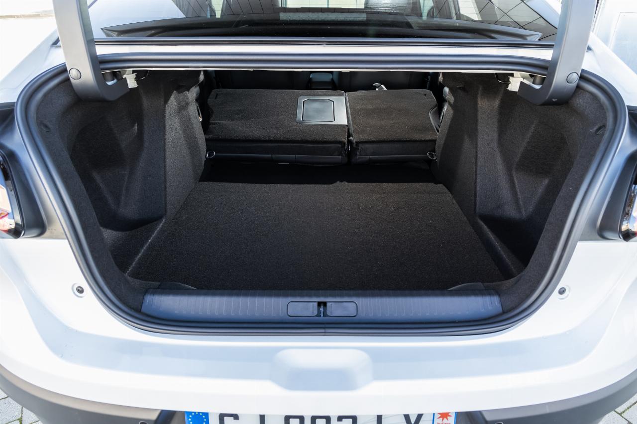 Mit 4,60 Meter in der Länge reiht sich der ë-C4 X unterhalb des Mittelklassemodells C5 X (4,80 Meter) und über seinem 24 Zentimeter kürzeren Fließheck-Zwilling ein, Breite, Höhe und Radstand (2,67 Meter) bleiben indes mit Letzterem identisch. Damit ist zugleich offensichtlich, was die neue Karosse, die bei beiden Modellen bis zur B-Säule vollkommen identisch ausfällt, vor allem bringen soll: mehr Kofferraum. Und tatsächlich übertrifft das Gepäckfach des Stromers mit maximal 510 Liter Volumen das des C4 (380 Liter) um mehr als 120 Liter. Dank asymmetrisch geteilt umklappbarer Rücksitzlehne samt Durchreiche ließe sich die Kapazität sogar noch auf maximal 1360 Liter ausbauen. Allerdings: Die hohe Ladekante und die kleine Ladeluke erschweren das Befüllen des Heckabteils. Anders als bei der Fließheckversion bleiben hier größere oder sperrige Gegenstände außen vor. Beim Stromer kommt außerdem noch hinzu, dass die Ladekabel in der Reserveradmulde verstaut sind und bei Bedarf unter dem Gepäck heraus gezogen werden müssen.