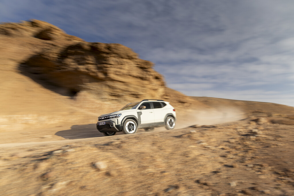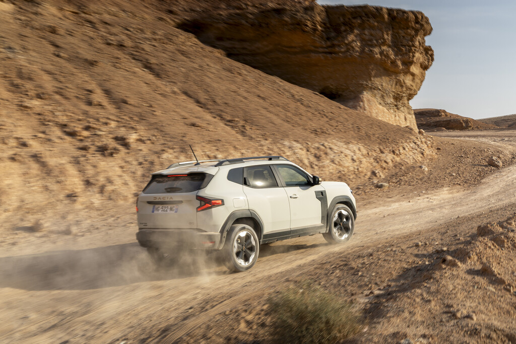 Der Antrieb ist eine aufwändige Kombination aus einem 1,2-Liter-Dreizylinder Mildhybrid-Motor (48 Volt) an der Vorderachse, der mit einem 23 kW (31 PS) starken Elektromotor an der hinteren Achse verbunden ist. Die Systemleistung steigt so auf 154 PS (113 kW). Für die Kraftübertragung ist ein Sechs-Gang-Doppelkupplungsgetriebe verantwortlich. Die Gänge können manuell – erstmals bei Dacia – über Schaltwippen am Lenkrad gewechselt werden. Der elektrische Motor im Heck besitzt – Weltpremiere – zwei Gänge, wobei der erste Gang bei geringen Geschwindigkeiten zusätzliches Drehmoment liefert, um so die Geländeeigenschaften deutlich zu steigern. Der zweite Gang kommt bei schnellerer Fahrt zum Einsatz. Zum ersten Mal hat Dacia gegenüber der Konzernmutter Renault übrigens die Nase vorn. Eine vergleichbare Antriebskombination gibt es dort noch nicht.