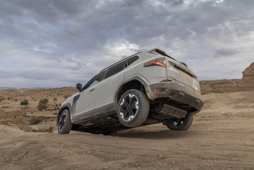 Mit diesen Hilfen an Bord lassen sich Ausflüge in die Wüste problemlos bewältigen. Die Lenkung ist zwar bei einigen kniffligen Passagen etwas zu leichtgängig, doch sie bleibt präzise genug, um plötzlich auftauchenden Hindernissen auszuweichen. Und während sich der Duster durch die unwirtliche Landschaft kämpft, zeigt die Karosserie ihre Nehmerqualitäten. Die Fahrgeräusche während der Wüstentour lassen zwar Schlimmes vermuten, doch bei der Rückkehr in die asphaltierte Welt rappelt nichts, um einen früheren VW-Chef zu zitieren. Bis auf den Wählschalter für die verschiedenen Fahreinstellungen hat sich im Innenraum gegenüber den Frontantriebsversionen nichts verändert. Die einfachen Materialien sind solide verarbeitet und machen so einen durchaus wertigen Eindruck.