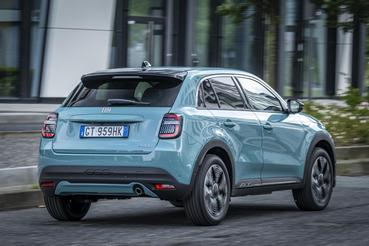 Die Preise für den Fiat 600 sinken mit dem Hybrid-Modell deutlich. Während die Elektro-Variante bei 36.490 Euro startet, gibt es das Basismodell des 600 Hybrid schon ab 24.990 Euro, die stärkere Version kostet 1500 Euro mehr. Zur Serienausstattung zählen bereits das Digital-Cockpit und 10,25-Zoll-Infotainment-System inklusive Smartphone-Integration, Klimaanlage, Sitzheizung, LED-Scheinwerfer sowie jede Menge Assistenzsysteme. 17-Zoll-Alufelgen und Ambientebeleuchtung gibt es jedoch erst mit dem Style-Paket (1600 Euro), Rückfahrkamera, Klimaautomatik und Keyless-Go mit dem Komfort-Paket (1600 Euro).