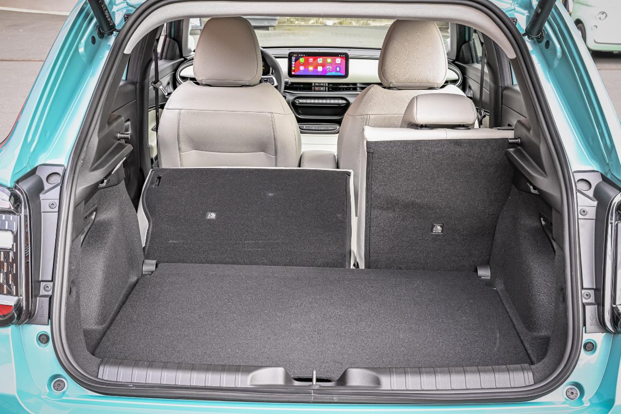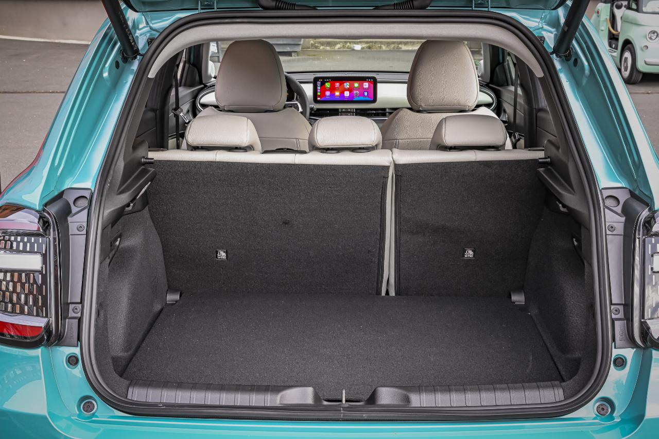 Über die Bein- und Kopffreiheit auf den Rücksitzen sollten Menschen bis 1,85 Meter wenig zu meckern haben. Das Kofferraumvolumen steigt im Vergleich zum elektrischen Fiat 600 um 25 auf 385 Liter, mit umgeklappten Rücksitzlehnen auf 1256 Liter.