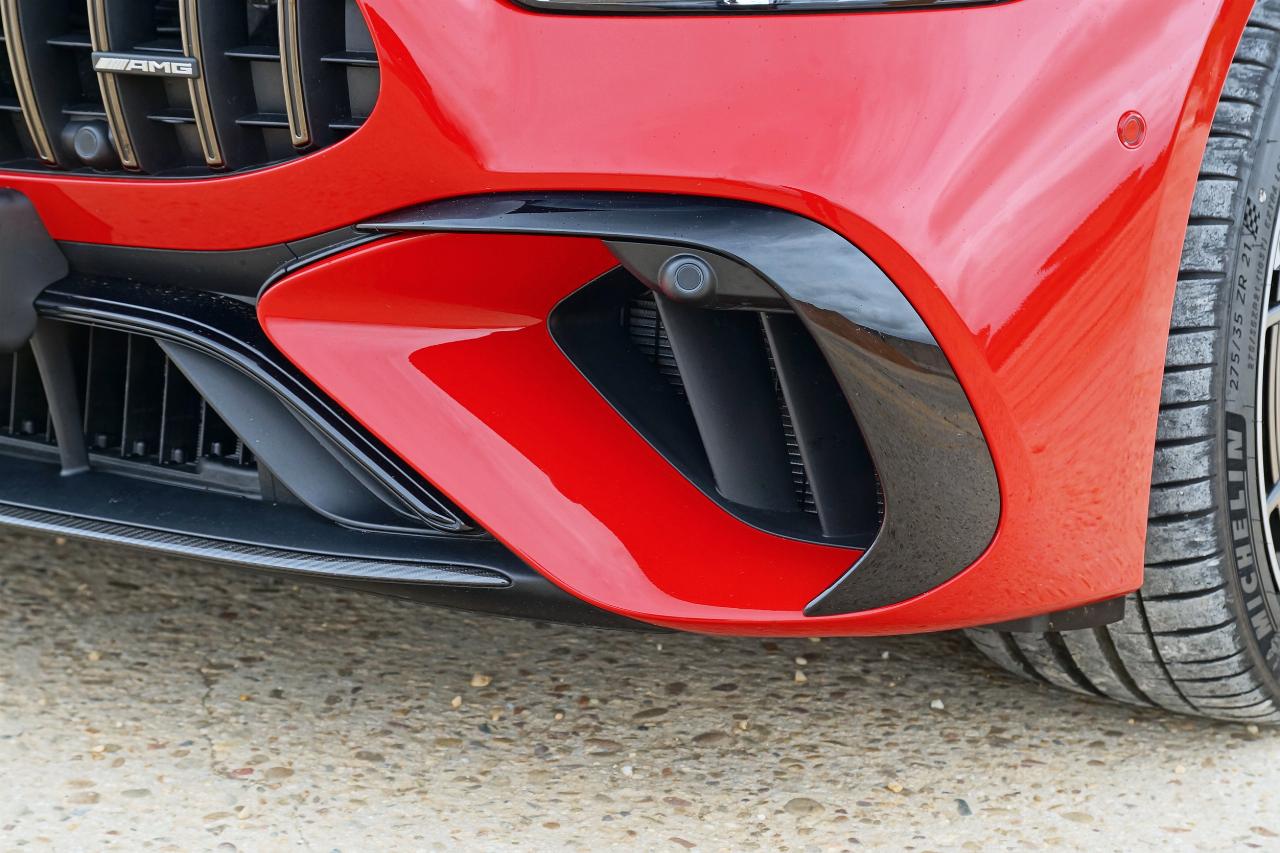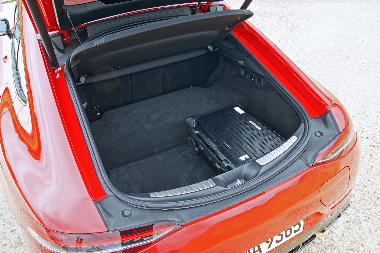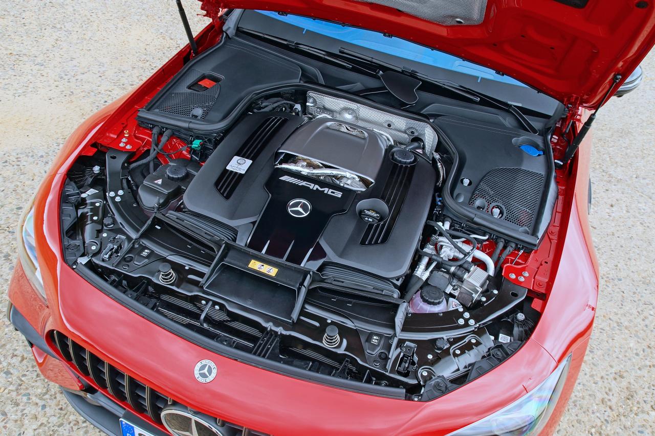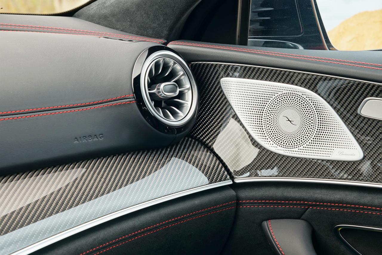 Das Luftfahrwerk kommt mit der Leistung und den fast 2,4 Tonnen Gewicht zu zurecht, wurde jedoch anders abgestimmt, um Rolleffekten entgegenzuwirken. Mit neuen Dämpfern, die über außenliegende Ventile verfügen, wurde eine um 200 Prozent größere Spreizung erreicht, Zug- und Druckstufe lassen sich jetzt erstmals unabhängig voneinander ansteuern. Zwei Drittel des Potentials wurden nach Kundenrückmeldungen in besseren Komfort investiert, AMG sagt jedoch, das Auto sei auch agiler geworden. Übrigens will der GT 63 S E Performance den Fahrstil des Fahrers erkennen und sich entsprechend anpassen. Hobby-Renningenieure können mannigfache Daten aufzeichnen und am heimischen Rechner auswerten.