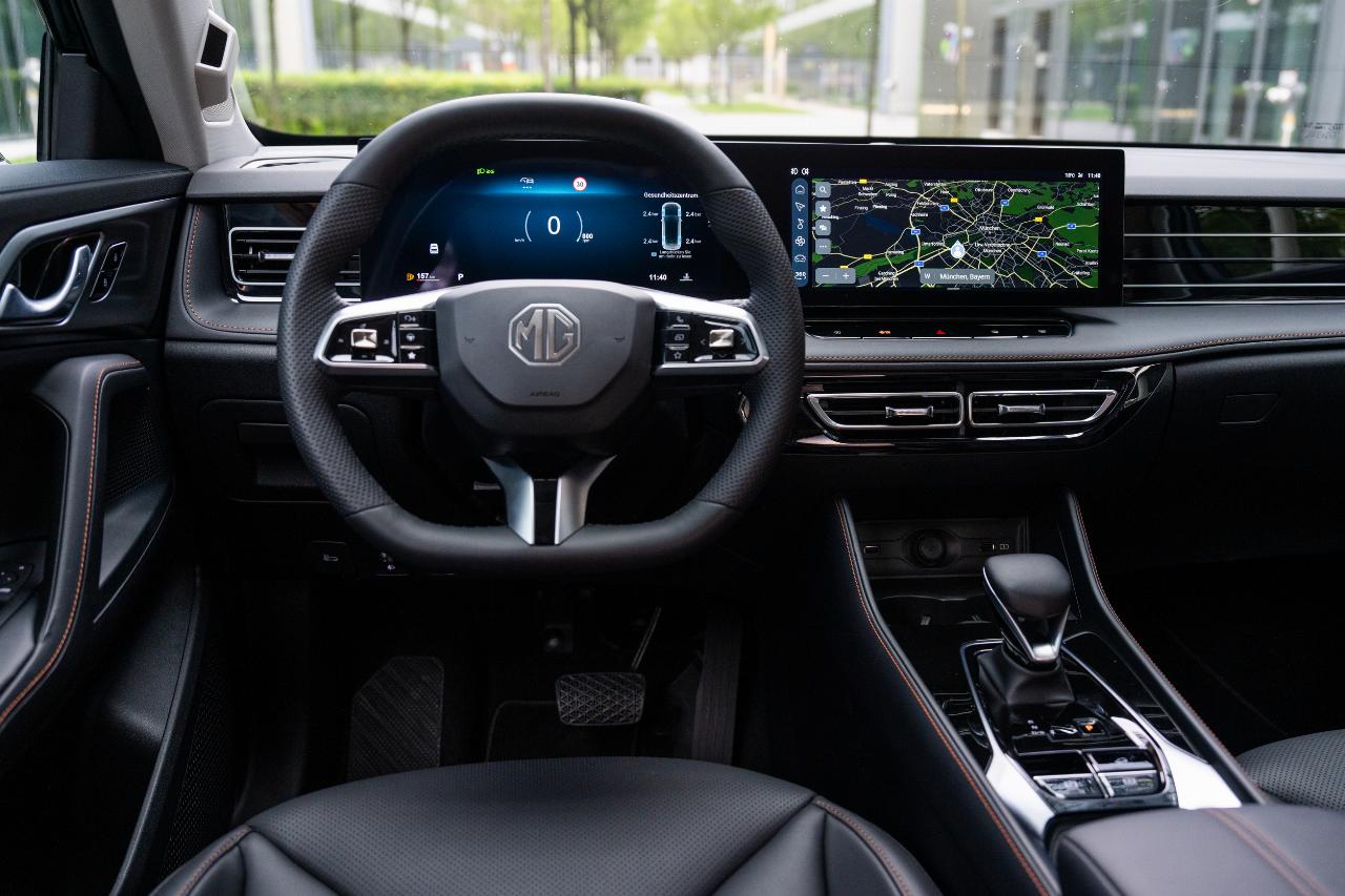 Sportliche Ambitionen auf der Landstraße liegen ihm eher fern, trotz serienmäßiger 19-Zoll-Räder. Übrigens tut man gut daran, vor Fahrtantritt manuell die etwas übermotivierte Fahrerüberwachung abzuschalten. Dass dies jedesmal aufs neue erfolgen muss, ist nicht MG, sondern den EU-Regularien vorzuwerfen. Das Infotainment-System ist übersichtlich und leicht zu erlernen.