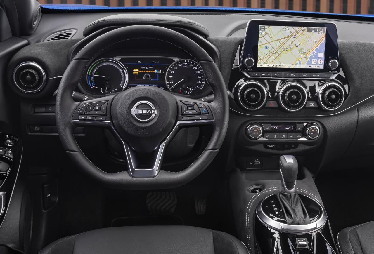 Der Innenraum wurde ebenfalls leicht überarbeitet. Zwei Rundinstrumente zeigen Geschwindigkeit und den jeweiligen Ladezustand der Batterie an. Zwischen ihnen kann der Fahrer die Zusammenarbeit der beiden Antriebe verfolgen. Das Kofferraumvolumen liegt bei 354 Litern – wegen des Akkupaktes 68 Liter weniger als beim konventionell angetriebenen Juke. Die Preisliste beginnt bei 31.090 Euro.