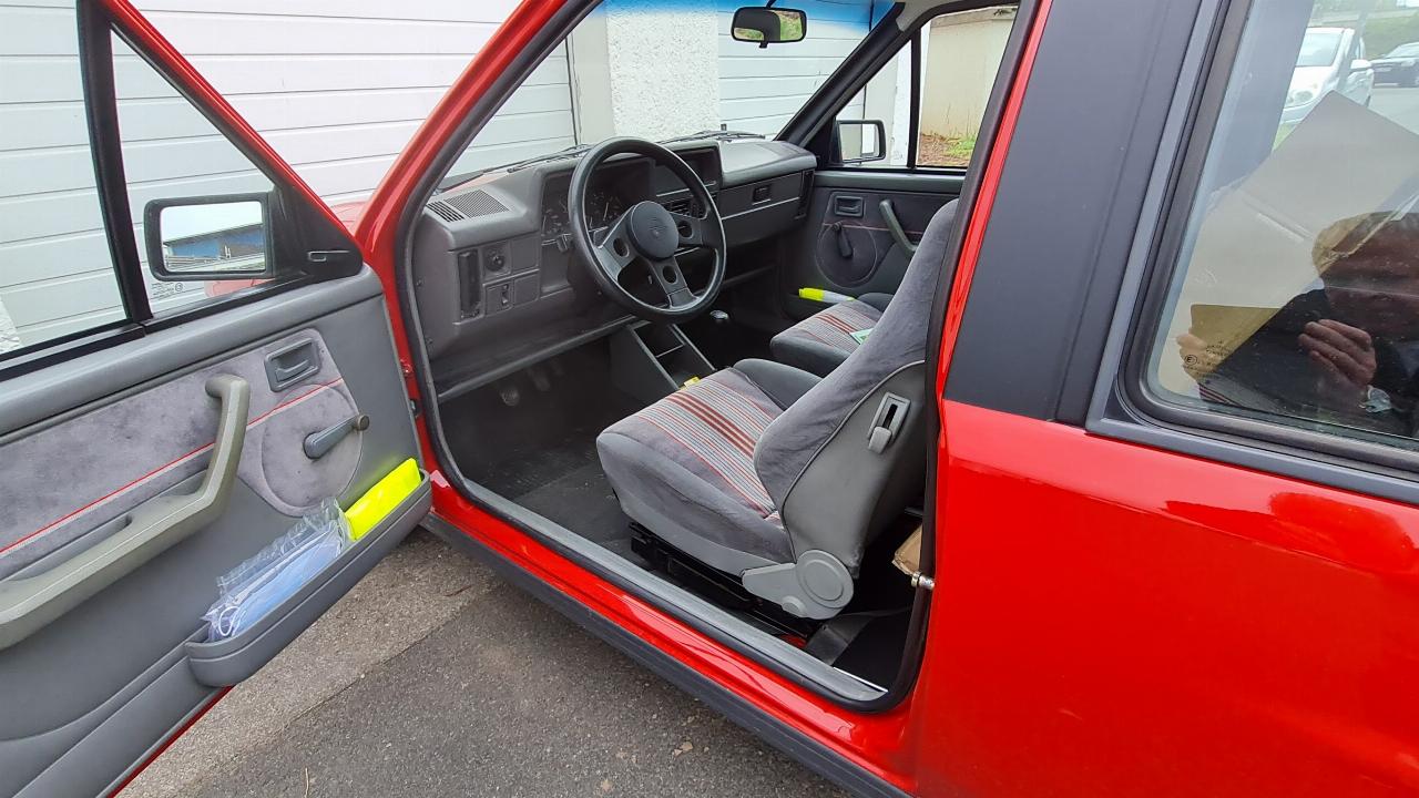 Sportsitze sind vorne aufgestellt, viel Seitenhalt geben sie nicht. Auch das Lenkrad steht nicht direkt vor dem Fahrer, sondern ist leicht nach rechts versetzt eingebaut. Das stört kaum, zumal es mit einem kleinen und griffigen Lenkradkranz gut in der Hand liegt. Beherzt geht es in die erste Kurve. Der GSi nimmt sie mit Bravour und spornt zu mehr Wagemut an. Das Fahrwerk ist straff abgestimmt, kommt aber an die Härte manch aktueller Auslegungen nicht heran und bleibt zumeist komfortabel. Allein die Hitze des Tages dämmt die Ausflugsfreuden, eine Klimaanlage gab es damals weder für Geld noch gute Worte.