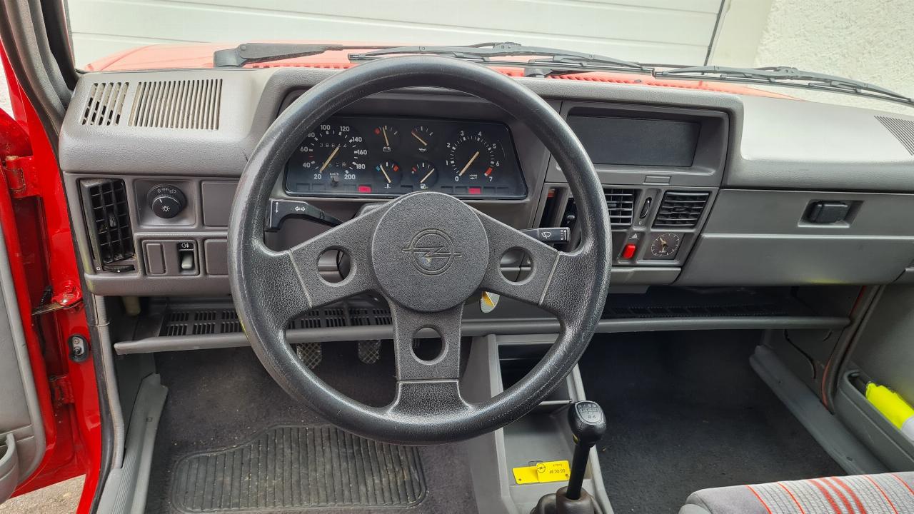 Einer der Mini-Sportler, einer aus dem Baujahr 1989, hat die Zeiten in der wohlsortierten Klassik-Sammlung von Opel überdauert, zum Geburtstag der Baureihe haben wir uns mit ihm zu einer Ausfahrt aufgemacht und waren erneut vom Potenzial des flinken Kracherles begeistert. Schon die Instrumentierung weist auf den Anspruch hin. Neben dem damals unüblichen Drehzahlmesser geben eine Öldruckanzeige und ein Voltmeter Aufschluss über die Konditionen im Antriebsstrang. Statt vier hat das Getriebe fünf Gänge, es schaltet sich immer noch genau und schnell. Und bei 1,6 Litern Hubraum mobilisiert der Saugbenziner immerhin 135 Newtonmeter Drehmoment. Das zwar erst bei 3400 Umdrehungen in der Minute, aber die Kurve verläuft nicht allzu steil, schon bei 2000 U/min geht es ordentlich zur Sache.