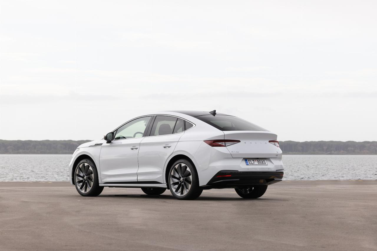 Es ist mit einem cw-Wert von 0,234 aerodynamisch nochmals günstiger als der reguläre Enyaq, und die Einbußen an Kofferraumvolumen halten sich in engen Grenzen. Die Modellpalette ist anders aufgestellt, mit höher positioniertem Einstieg und einem RS-Modell an der Spitze. Ausstattungsbereinigt trennen das Coupé vom normalen Enyaq jedoch lediglich rund 1500 Euro, so dass es vor allem Geschmackssache ist, für welche der beiden Karosserieformen man sich entscheidet.