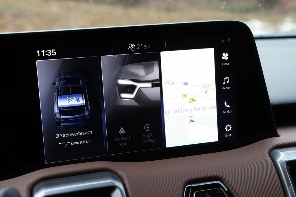 Für ein wenig Verwirrung sorgte bei der ersten Ausfahrt mit dem Neuzugang die Maximalanzeige eines Durchschnittsverbrauchs von 30 Kilowattstunden. Nicht gänzlich zu klären war, ob es sich um eine falsch eingestellte Software oder den Wert aus den werksseitigen Einführungsfahrten handelte. Die Korrelation von angezeigter Restreichweite und verbliebener Batteriekapazität funktionierte aber. Bei einstelligen Minusgraden wurden bei zu 99 Prozent gefülltem Akku ein Aktionsradius von rund 320 Kilometern versprochen. Nachdem 40 Prozent des Stroms verbraucht waren, zeigte das Display noch 200 verbleibende Kilometer an.