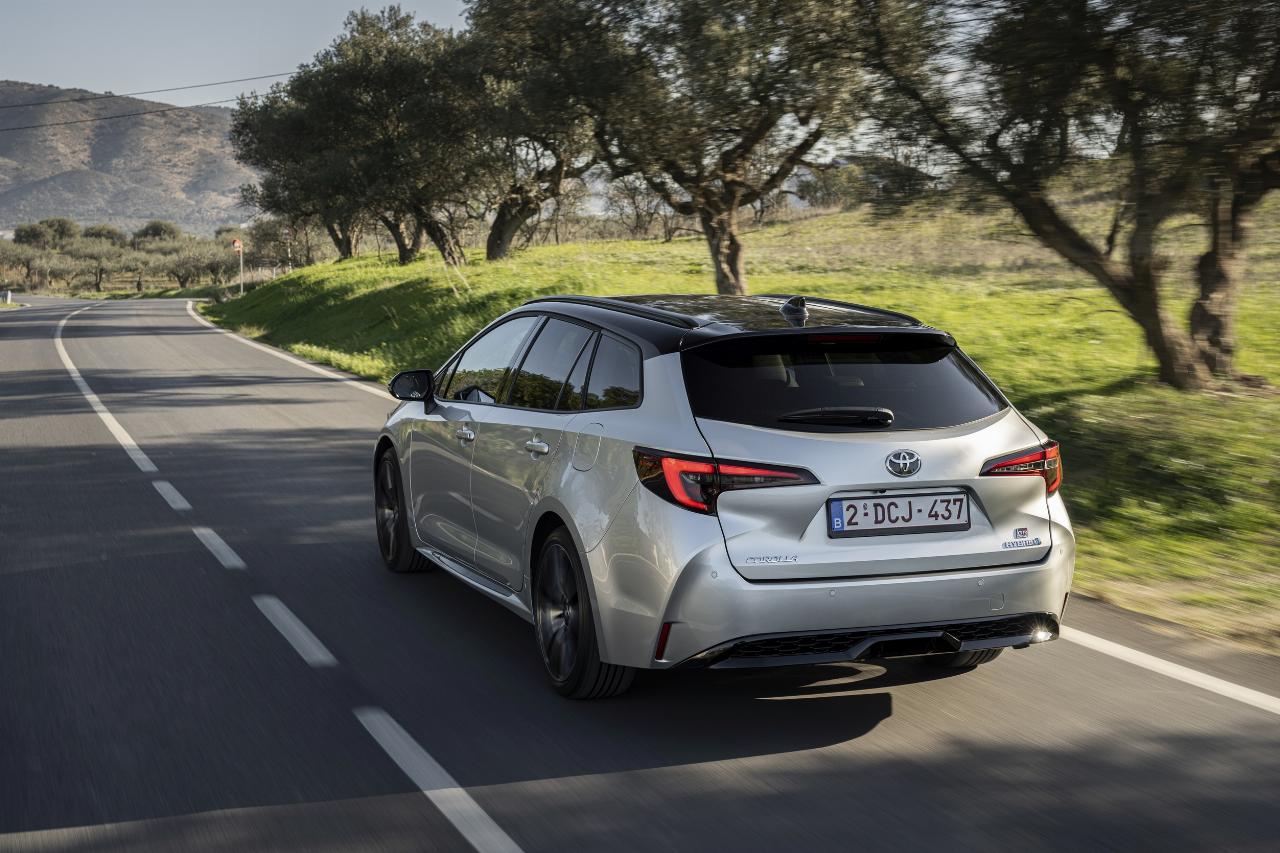 Neben der aktualisierten Vernetzung spendierten die Entwickler dem seit inzwischen mehr als 50 Jahre gebauten Corolla, den aktuellen Hybridantrieb der fünften Generation, bei dem sich je nach Version ein 1,8-Liter-Vierzylinder mit 98 PS (72 kW) oder einen 2,0-Liter-Aggrgeat mit 152 PS (112 kW) zusammen mit einem Elektromotor den Vortrieb teilen. Beim 1,8-Liter-Modell leistet der E-Motor 70 kW und beträgt die Systemleistung 140 PS (103 kW), während er beim größeren Motor 83 kW (113 PS) zur Systemleistung von 196 PS (144 kW) beisteuert. Bis Tempo 100 km/h vergehen aus dem Stand 9,2 oder 7,4 Sekunden. Bei 180 km/h ist bei beiden Motorisierungen die Höchstgeschwindigkeit erreicht.