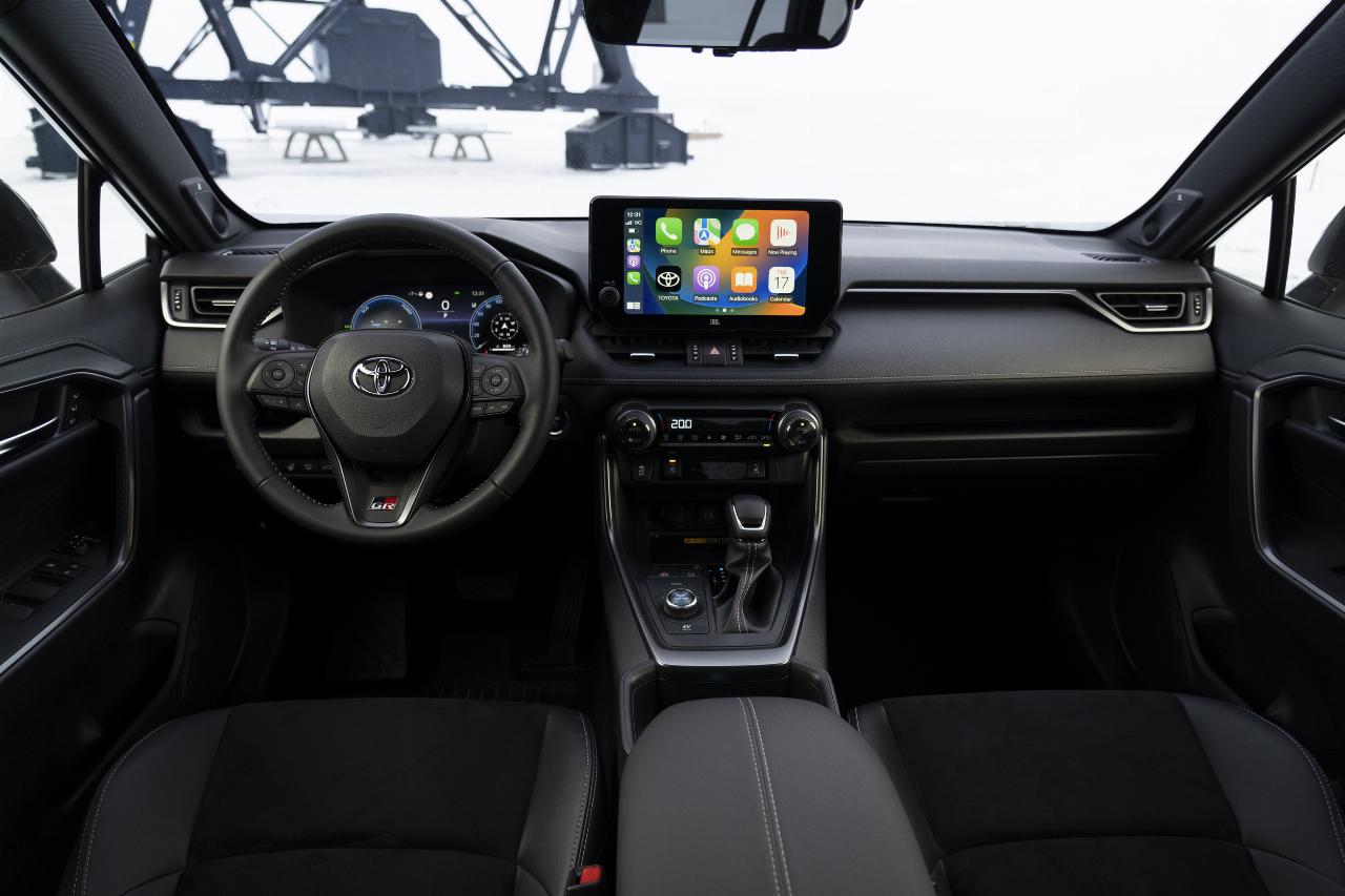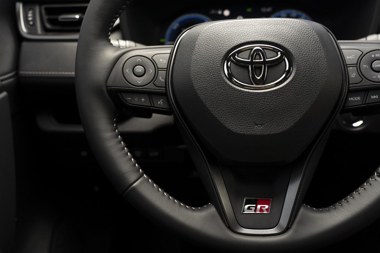 Sportlich ist beim RAV4 GR Sport vor allem der optische Auftritt: Das kantig-moderne Design des RAV4 wird hier mit schwarzen Akzenten und eigenständigem Kühlergrill akzentuiert, innen dominiert ebenfalls die Farbe schwarz. Die Sitze sind mit Mikrofaser-Stoff bezogen, während der Lenkradkranz aus weichem Echtleder ist. Das ganze wirkt edel, sportlich und hochwertig.