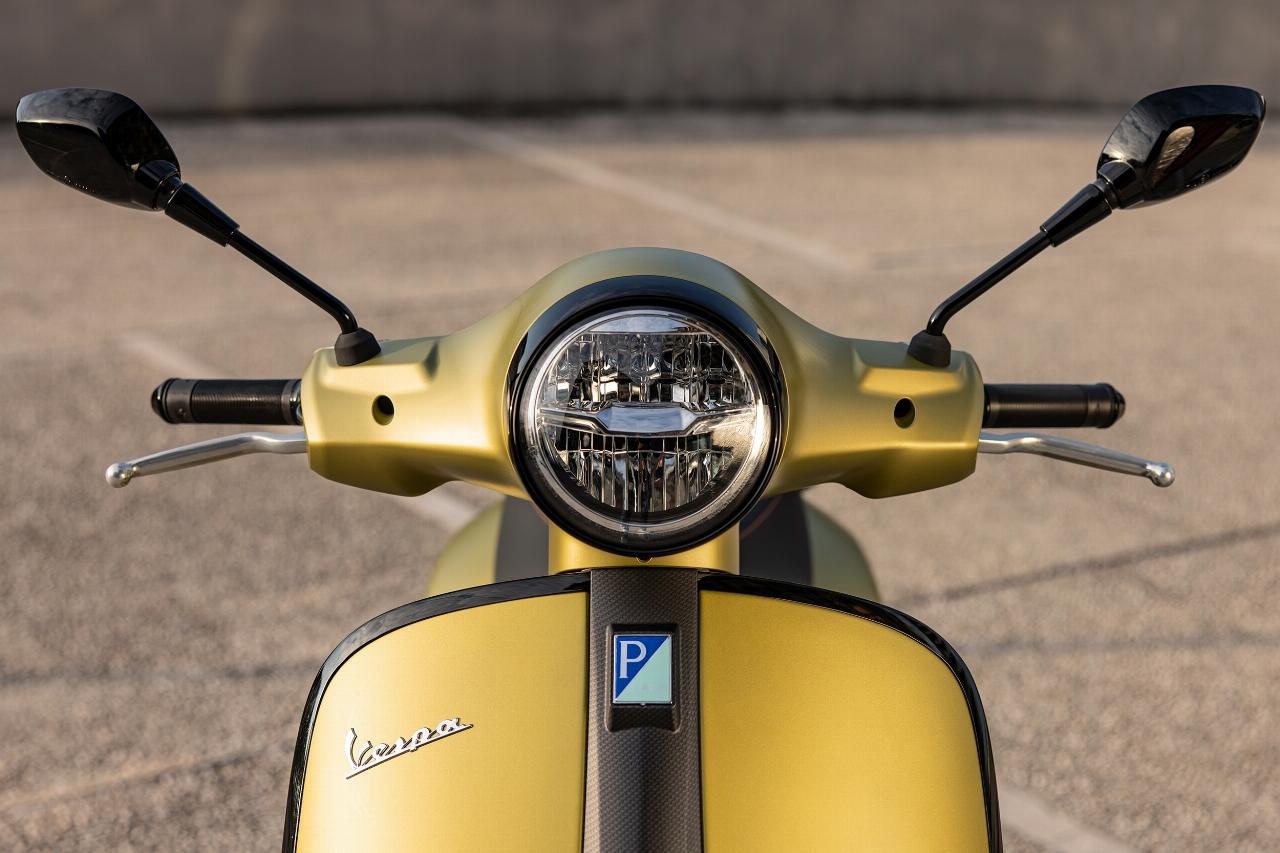 Das liegt in erster Linie an den neuen Bremsen und der komplett überarbeiteten Einarmschwinge. In Kombination mit dem neuen Federbein bringt die vordere Schwinge jetzt eine Souveränität und Ruhe ins Fahrwerk, die man der Vespa mit ihren putzigen Zwölf-Zoll-Rädern nie zugetraut hätte. Keine Vibrationen beim Fahren, kein Klappern oder Poltern, dazu ein sonorer, angenehm zurückhaltender Sound. Der Motor reagiert prompt auf Gasbefehle. Unangestrengt und souverän schiebt er die knapp 158 Kilogramm schwere Vespa nach vorn. Durchaus mit Schwung und Nachdruck, aber völlig unaufgeregt.
