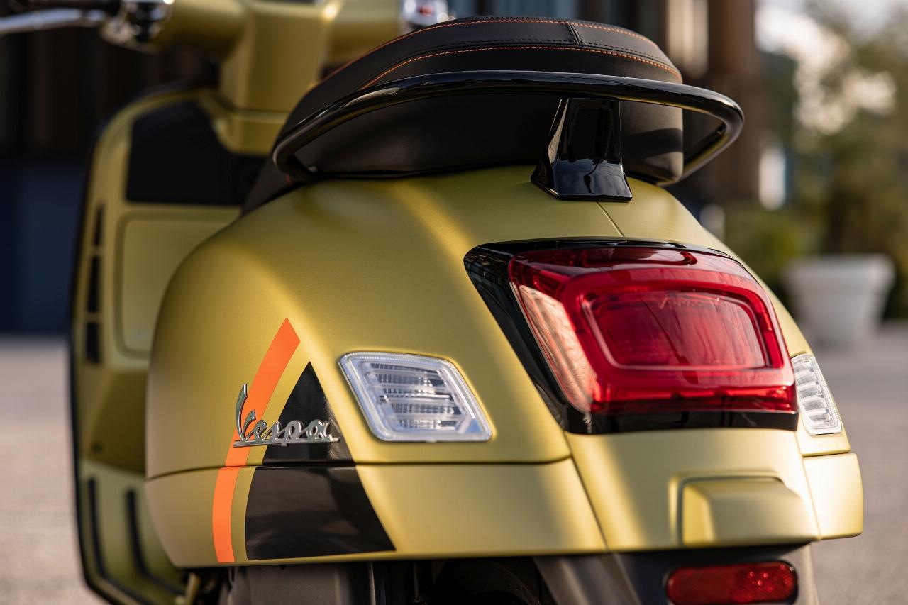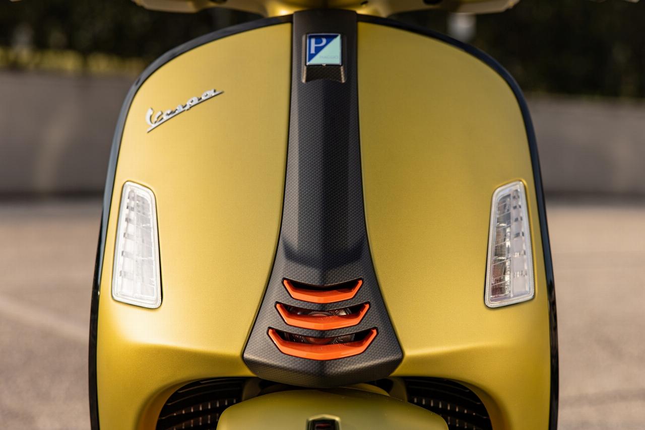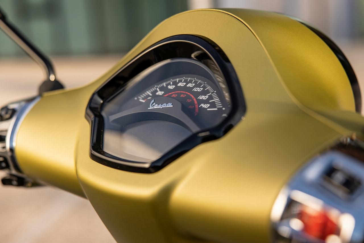 Gestartet wird ab sofort einheitlich per Keyless-System. Bedeutet: Schlüssel dabei haben reicht. Als GTS 125 verfügt die Vespa serienmäßig über eine abschaltbare Start-&-Stopp-Automatik. Die große Schwester verzichtet darauf. Insgesamt stehen 14 Lackierungen zur Wahl. Super Sport und Super Tech schmücken sich mit zackigen Farbakzenten auf der vorderen Radabdeckung, in den drei Einlassöffnungen der „Krawatte“ auf dem Beinschild und auf den hinteren Kotflügel-Backen. Verchromt oder Schwarz glänzend sind je nach Modell unter anderem die Spiegel, der Lampenring des LED-Scheinwerfers und der Heckhaltegriff für den Sozius. Einheitlich auf einer Chromplatte gebettet sind die Bedienelemente am Lenker.