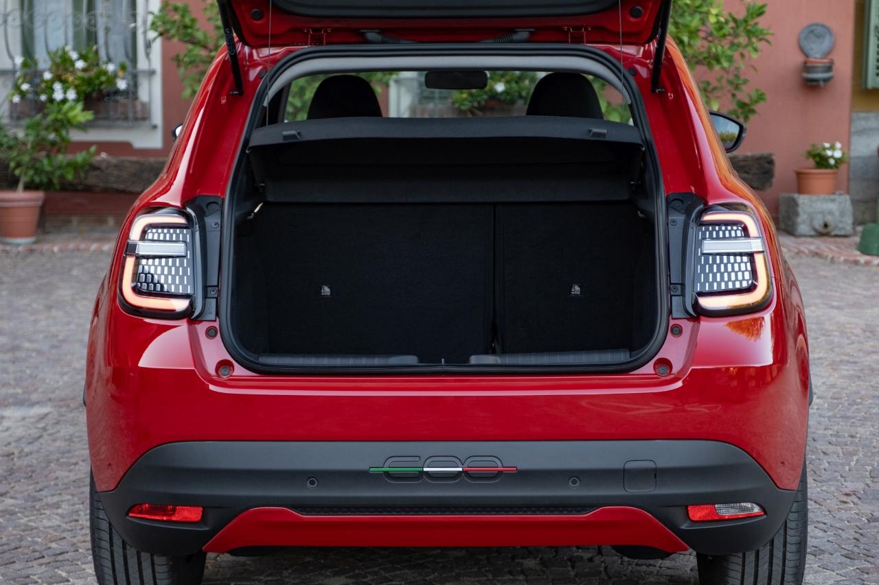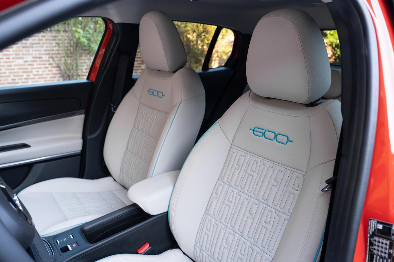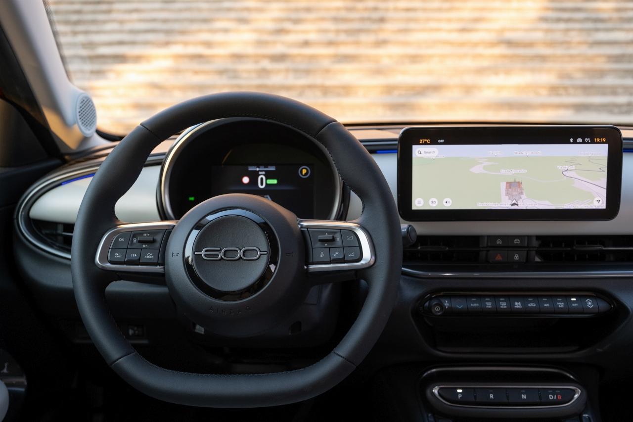 Zur Serienausstattung des Fiat 600e gehören unter anderem sechs Airbags, eine intelligente Geschwindigkeitsregelanlage, Spurhalteassistent und Parksensoren hinten. Das Infotainmentsystem wird über einen Monitor mit einer Bildschirmdiagonale von 10,25 Zoll (26 Zentimeter) gesteuert, das zentrale Kombiinstrument ist sieben Zoll groß (17,8 Zentimeter). Der Kofferraum fasst 360 Liter.