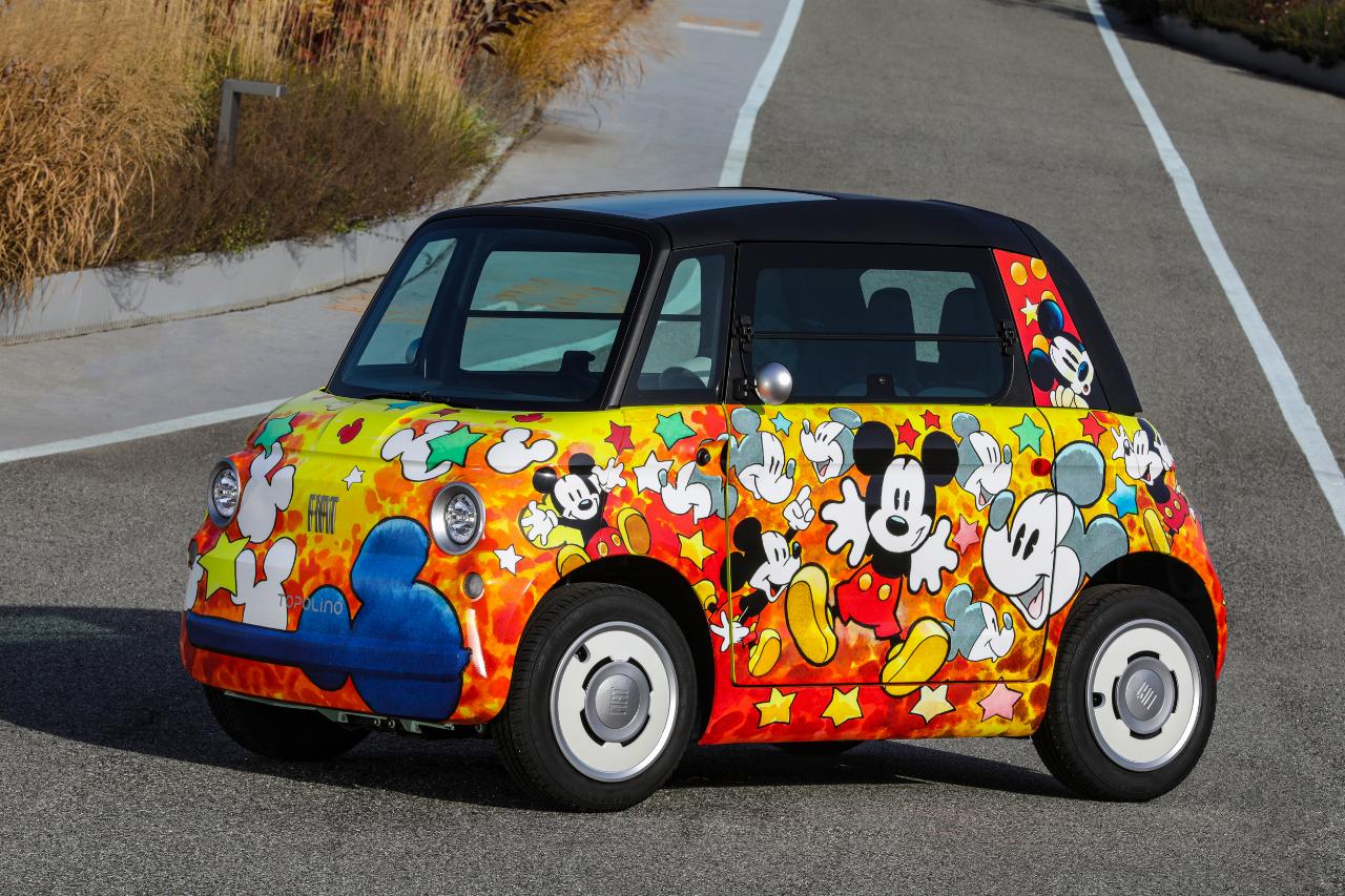 Jede der fünf Topolino-Sondereditionen greift ein Thema rund das weltberühmte „Comic-Mäuschen“ in einer Zeitreise auf und trägt ein einzigartiges Design. Während vier der Unikate aus der Feder der Designer des Centro Stile von Fiat stammen, wurde das fünfte Modell von Giorgio Cavazzano, einem der berühmtesten Disney-Zeichner, entworfen. Auf seinem kunterbunt gestalteten Modell springt Micky Maus mehrfach einem scheinbar entgegen, während sie dabei freudestrahlend winkt und lächelt.