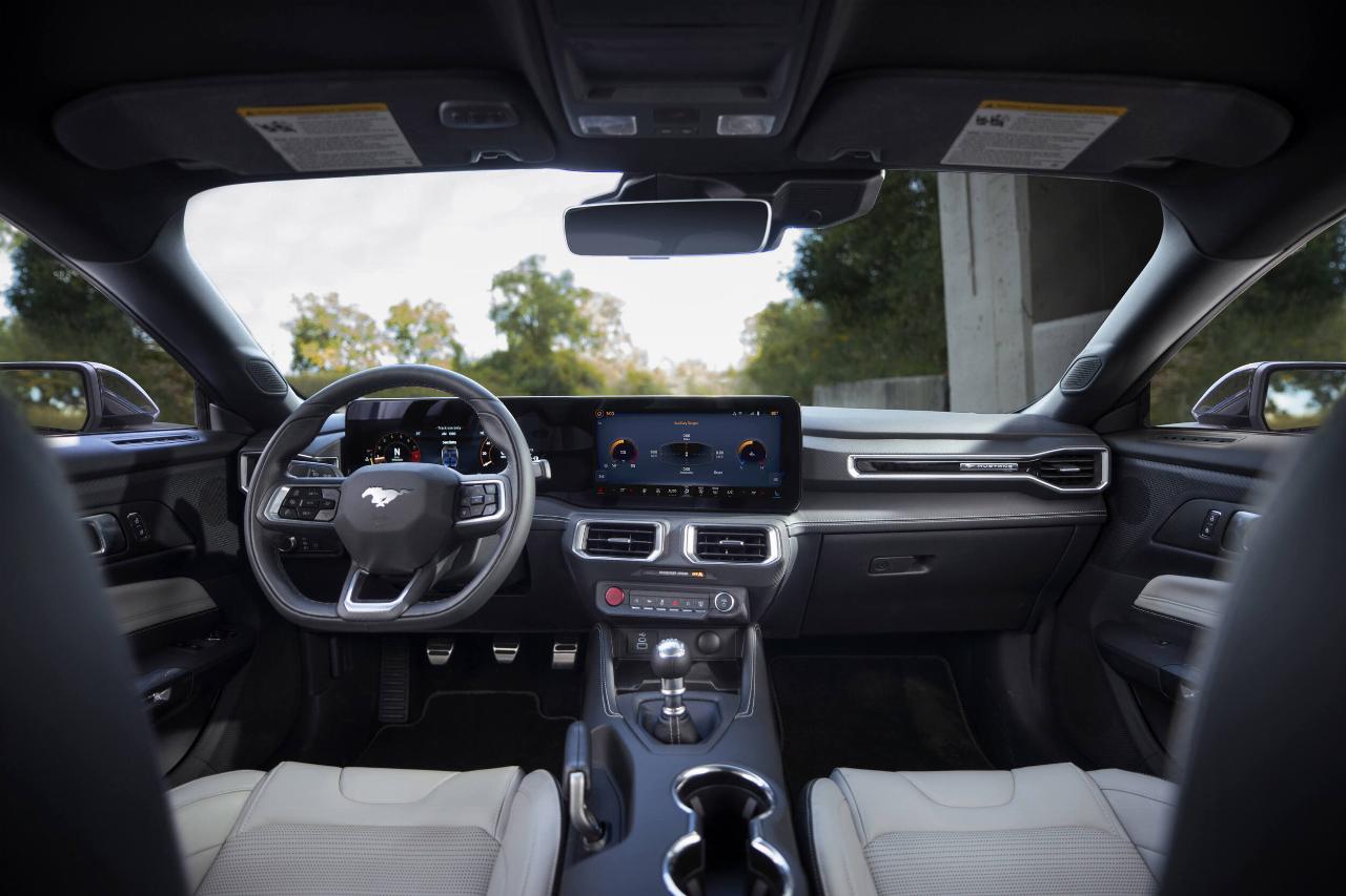Der Vierzylinder seine Handschaltung, es gibt ihn nur noch mit Zehngang-Automatik. Den V8 inklusive der Dark-Horse-Version gibt es hingegen weiterhin nicht nur mit dem Automaten, sondern auch mit einer Sechsgang-Handschaltung, die überflüssigerweise über eine automatische Drehzahlanhebung beim Schalten verfügt. Die V8-Version mit Automatik kann per Fernbedienung zum Hochdrehen gebracht werden, um Zuhörer zu erfreuen; Ford nennt dieses Feature, mit dessen Einführung in Europa kaum zu rechnen ist, „Remote Rev“. Die Lenkung ist direkter ausgelegt aus bisher, und es stehen sechs elektronisch geregelte Fahrmodi zur Verfügung.