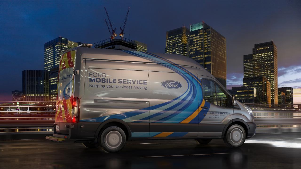 Um die Einsatzbereitschaft der Kundenfahrzeuge sicherzustellen, liefert eine neun mal zwei Meter große Videowand den Mitarbeitern von Ford Pro (für Produktivität) die benötigten Fahrzeugdaten. Die Informationen über den aktuellen Fahrzeugzustand werden von den Transportern und Pritschenwagen in Echtzeit über das serienmäßig eingebaute Modem geschickt und direkt an die Kölner Zentrale gesendet. Sollte ein Problem mit dem Fahrzeug auftreten, erhält der Fahrer im Cockpit einen Wartungshinweis in Form einer aufleuchtenden Warnlampe. Gleichzeitig bekommt der Fuhrparkleiter den gleichen Hinweis auf seinem Rechner, der sich dann an den Kölner Hersteller wendet.