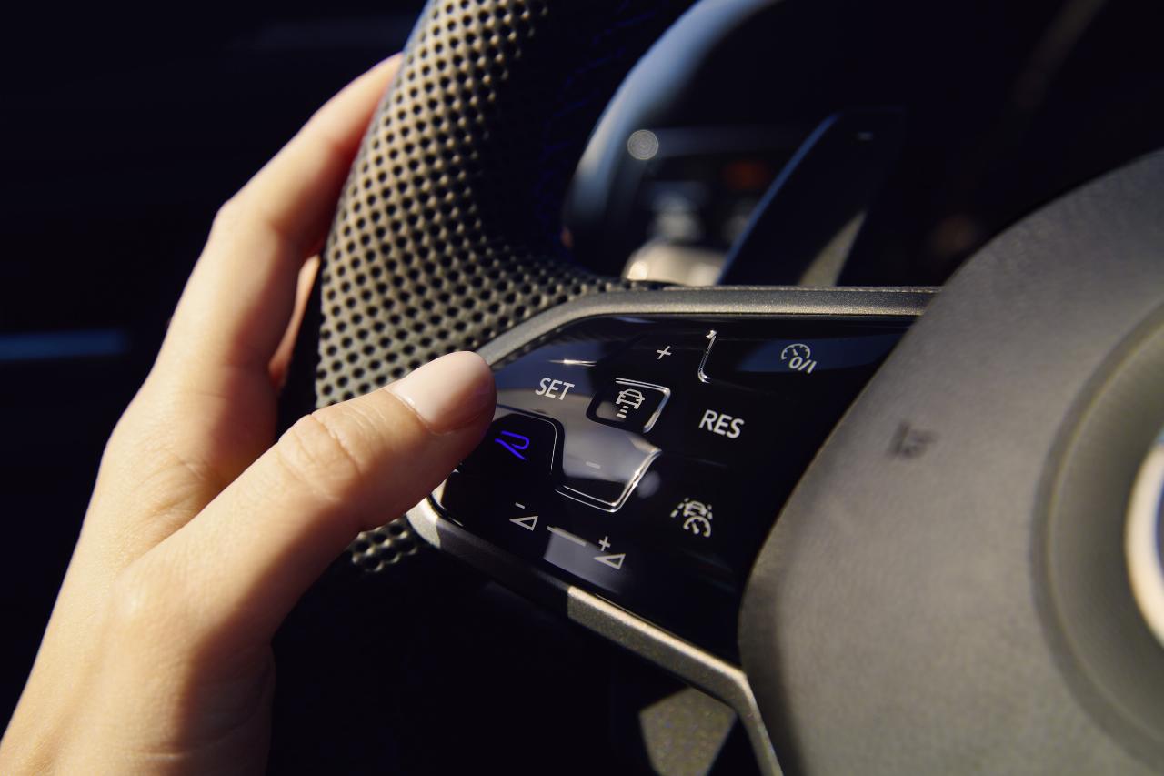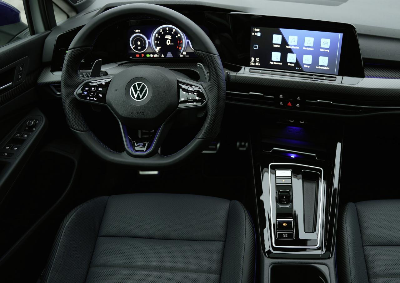 Erstmals sind bei einem Volkswagen Instrumententafel und Türverkleidungen serienmäßig mit Dekoreinlagen in Echt-Carbon gefertigt. Blaue R-Logos, zum Beispiel auf dem Multifunktionssportlenkrad (in 6-Uhr-Position) und auf der Kappe des Fahrzeugschlüssels, zieren das Sondermodell.