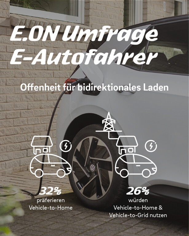 Rund ein Drittel der Hausbesitzer mit E-Auto können sich vorstellen, Strom aus dem Auto zur Versorgung des eigenen Haushalts zu nutzen. Weitere 26 Prozent befürworten eine Rückspeisung sowohl ins Haus als auch ins öffentliche Netz. Vehicle-to-Home bietet dabei vor allem Besitzern von Solaranlagen Vorteile: Tagsüber erzeugter Solarstrom, der nicht direkt verbraucht wird, kann im Akku des Elektroautos zwischengespeichert und zu einem späteren Zeitpunkt wieder abgerufen werden. So kann etwa am Abend, wenn die Sonne nicht mehr scheint, der gespeicherte Sonnenstrom genutzt werden, um energieintensive Geräte wie Spülmaschine, Waschmaschine oder Herd zu betreiben – ohne Netzbezug. In Pilothaushalten zeigte sich, dass die „mobile Batterie“ eine gute Ergänzung zu einem bereits bestehenden, im Vergleich zum Fahrzeug aber deutlich kleineren, Heim-Batteriespeicher ist.