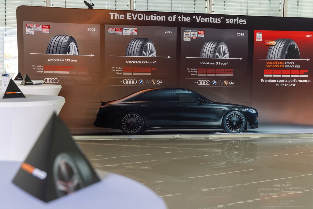 Der Launch des Ventus S1 evo, erstmals mit markantem „Wellenmuster“ in der Lauffläche, markierte 2005 für Hankook den Einstieg in das Premiumsegment für UHP-Reifen in Europa. Dank der exzellenten Fahreigenschaften konnte sich das sportlich ausgelegte Modell von Anfang an in diesem Segment behaupten und wurde in jeder neuen Generation in punkto Highspeed sowohl auf trockener als auch auf nasser Fahrbahn verbessert. Einen neuen Industriestandrad markierte dann das Ende letzten Jahres vorgestellte aktuelle Modell Ventus evo mit außergewöhnlichem Nassgrip, kombiniert mit niedrigem Rollwiderstand und hoher Laufleistung. Dank KI-basierter Entwicklung erfüllt der Reifen sowohl die Anforderungen nach sportlicher Performance wie höchster Sicherheit.