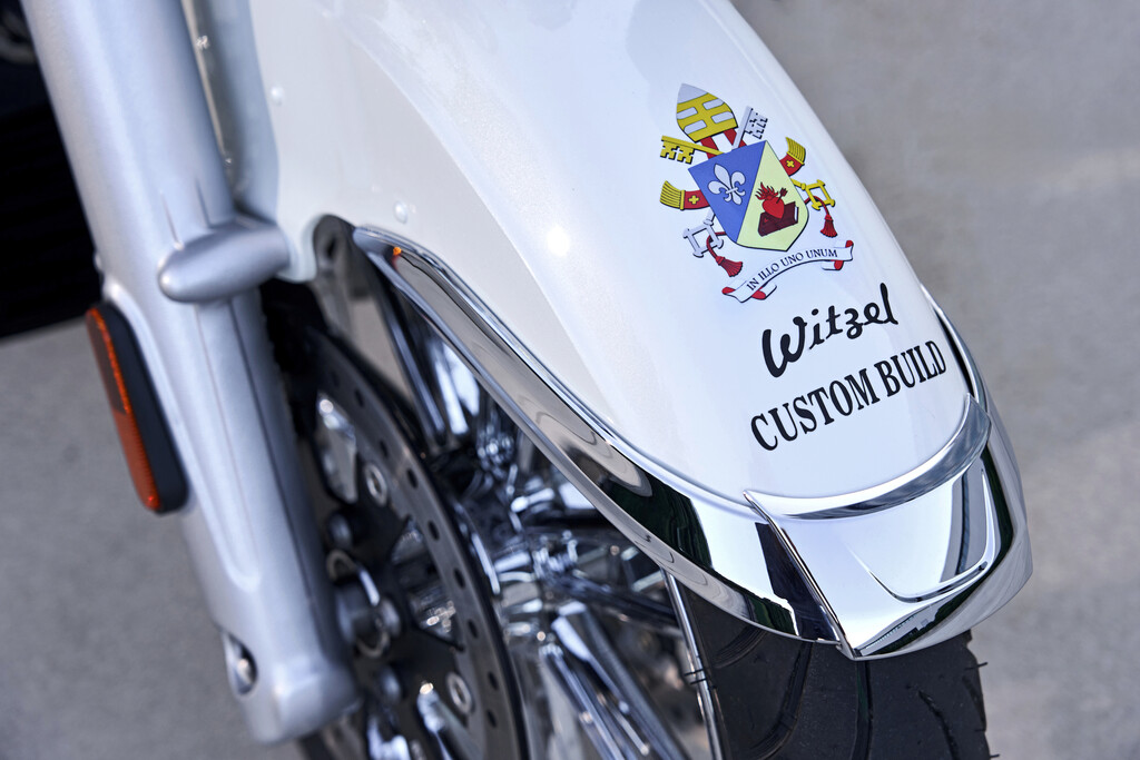 Die Geschichte begann im fränkischen Sennfeld: Von dort aus startete die perlmuttweiße BMW R 18 Transcontinental Ende August mit einem „Peace Ride“ Richtung Rom. Mit dabei: Vertreter der Jesus-Biker, Ideengeber Thomas Draxler, Mitarbeiter von BMW Motorrad sowie Händler Witzel, der die R 18 in ein echtes Unikat verwandelte – inklusive Vatikan-Wappen und Sonderlackierung. Auf Stationen in Schaafheim, Altötting und Verona wurde unterwegs nicht nur getankt, sondern auch gebetet.