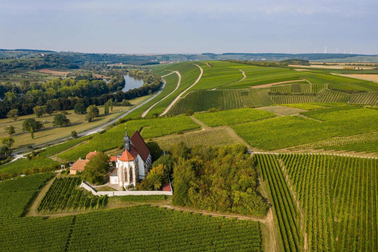 Der Campingplatz auf der anderen Seite des Alt-Mains kostet für ein Mobil mit zwei Campern 22 Euro, dafür gibt es hier sehr gepflegte Sanitäranlagen mit heißen Duschen. Sein Restaurant kämpft mit dem Personalmangel, das Angebot an Speisen ist dennoch veritabel. Stilvoller diniert es sich im Restaurant des Hotels Vogelsburg, das hoch in den Weinbergen gelegen nicht nur anspruchsvolle Gourmets zufrieden stellt, sondern auch einen unvergleichlichen Blick auf das fränkische Weinland erlaubt. Und wer den kräftig ansteigenden Weg auf die Höhe geschafft hat, sollte noch einen Abstecher zur Wallfahrtkirche Maria im Weinberg machen. Der Eintritt kostet zwar zwei Euro, doch hier lässt sich die berühmte Marienstatue von Tillmann Riemenschneider bewundern, die der Künstler 1524 erschaffen hat.