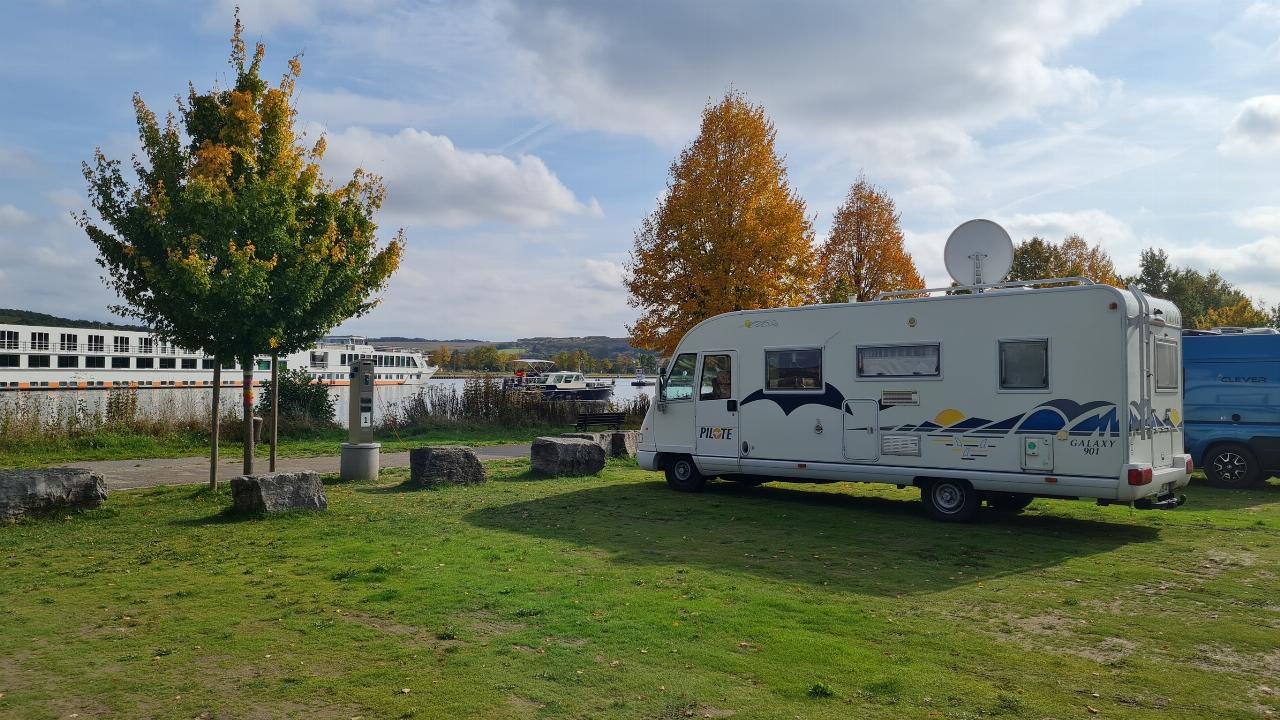 Der Stellplatz ist phantastisch, im Übernachtungspreis von acht Euro ist die Nutzung der einfachen, aber sauberen Toiletten eingeschlossen, seine Lage direkt vor der Schleusenanlage sorgt für Unterhaltung, denn die Schubverbände dürfen bis zu 180 Meter lang sein und es ist immer wieder eindrucksvoll zu sehen, wie routiniert die Kapitäne ihre Frachter zentimetergenau durch die Schleusentore manövrieren. Auch hier führt ein feiner Radweg am Fluss entlang. Und immer wieder gibt es Einkehrmöglichkeiten, kleine Cafés, Biergärten und Weinschänken.
