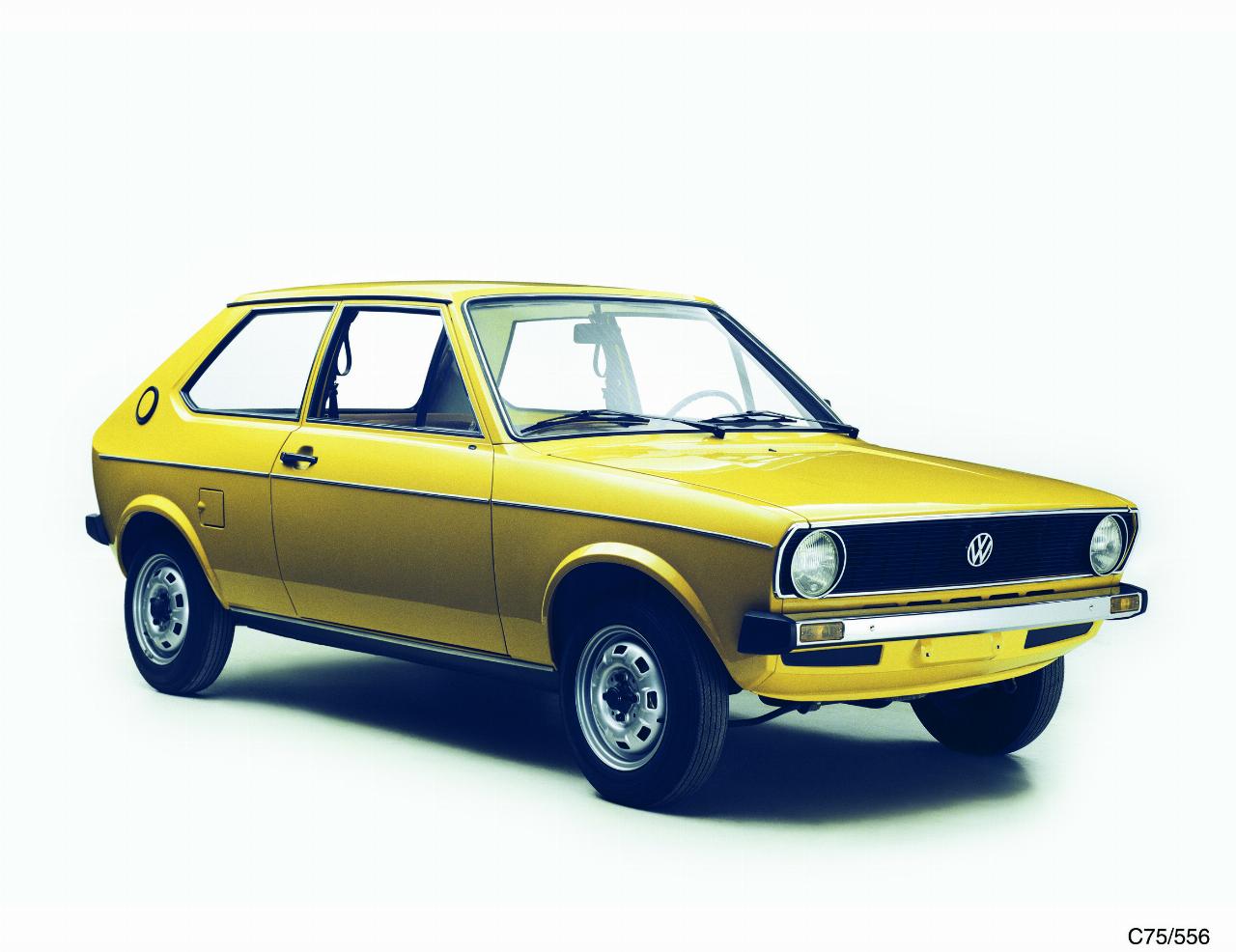 Erstmals der Öffentlichkeit präsentiert wurde der Polo im März 1975 auf dem Genfer Automobilsalon. Es handelte sich einen einfacher ausgestatteten Audi 50. Die Basisversion mit einer Leistung von 40 PS (29 kW) kostete 7500 D-Mark. Er bot mit einer Länge von 3,50 Metern Platz für vier Personen plus Gepäck. Die erste Modellgeneration lief bis 1978 vom Band, die modellgepflegte Version bis 1981. Insgesamt entstanden über 1,1 Millionen Fahrzeuge, zu denen auch die von 1977 bis 1981 gebaute Stufenheckversion Derby mit geräumigem Laderaum gehörte.