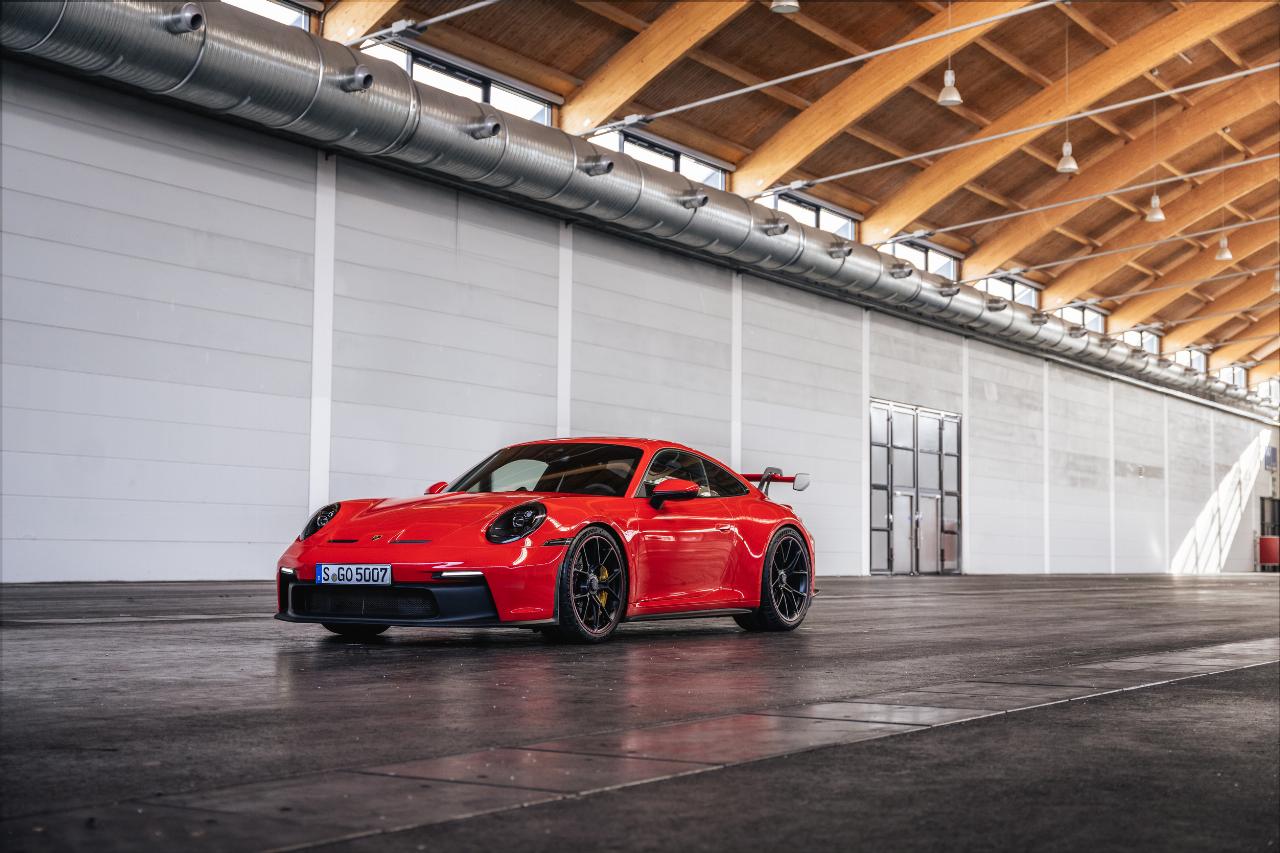 Der aktuelle 911 GT3 (Typ 992) wird 2021 vorgestellt und bringt es auf 510 PS (375 kW). Renntechnologien wie das Doppelquerlenker-Frontfahrwerk und eine optimierte Aerodynamik mit einem markanten Heckflügel im Schwanenhals-Design sorgen für die bislang stärkste Verbindung von Motorsport und Straßenzulassung im Porsche 911.