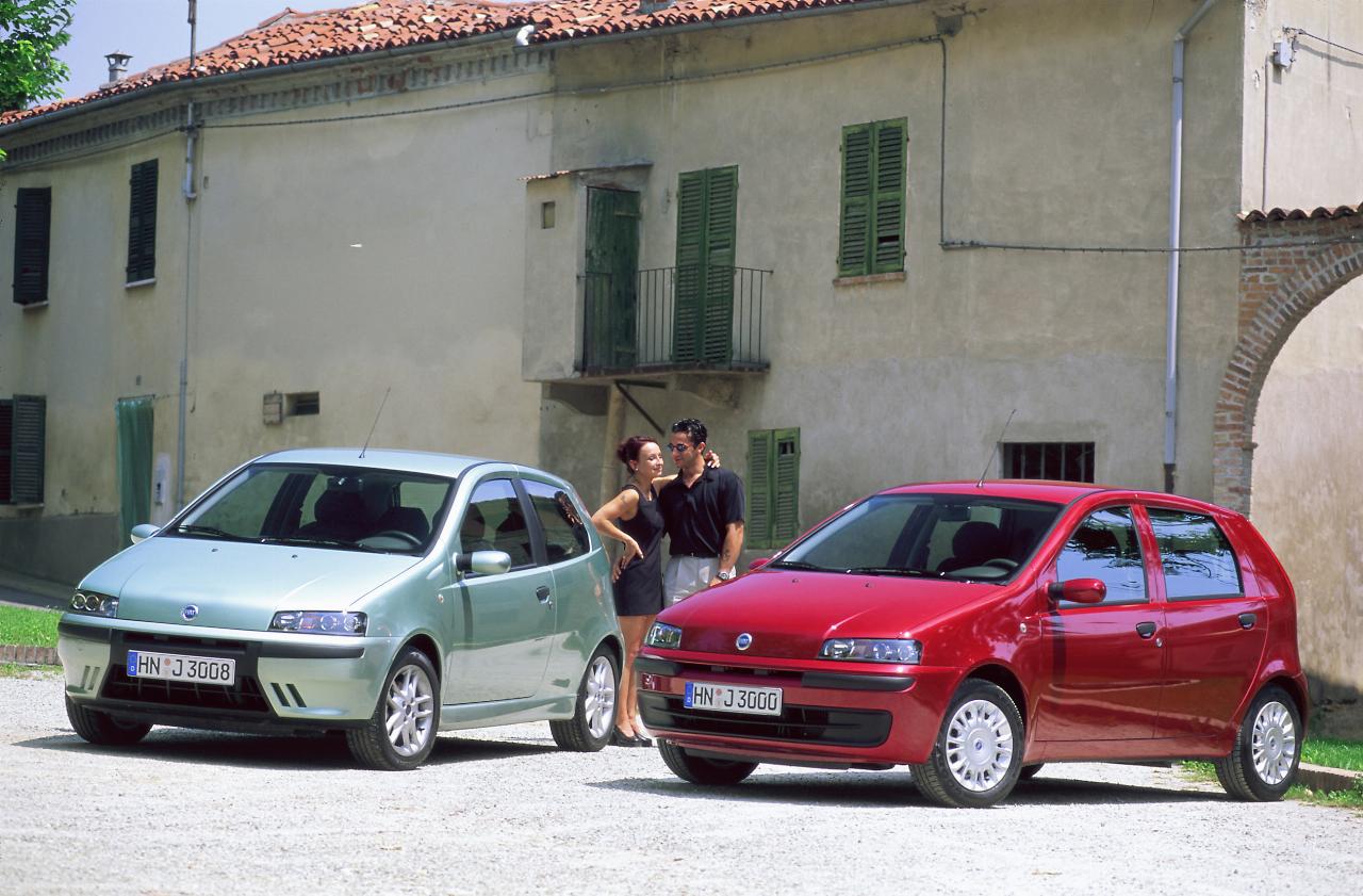 Pünktlich zum 100. Geburtstag der Marke kam im Juli 1999 die zweite Generation der Baureihe (Typ 188) auf den Markt. Das Design verantwortete das hauseigene Centro Stile Fiat, das die dreitürige Version mit einer sportlich-dynamischen Optik und den Fünftürer mit einer eleganteren Linie versah – dadurch unterschieden sich beide Modellversionen äußerlich deutlich. Der Basismotor produzierte aus 1,2 Litern Hubraum 60 PS (44 kW) als Zweiventiler und kam als Vierventiler auf 80 PS (59 kW). Im Punto HGT sorgte ein 1,8-Liter-16V-Benziner mit 131 PS (96 kW) für sportlichen Vortrieb. Ab 2001 gab es diesen Motor auch im Punto Abarth, mit dem Fiat damals eine traditionsreiche Marke wieder aufleben ließ. Der Fiat Punto 1.9 JTD (59 kW/80 PS) war der erste Kleinwagen, dessen Turbodiesel mit Common-Rail-Direkteinspritzung ausgerüstet war. Ohne Turbolader leistete der 1,9-Liter-Vierzylinder 60 PS (44 kW).