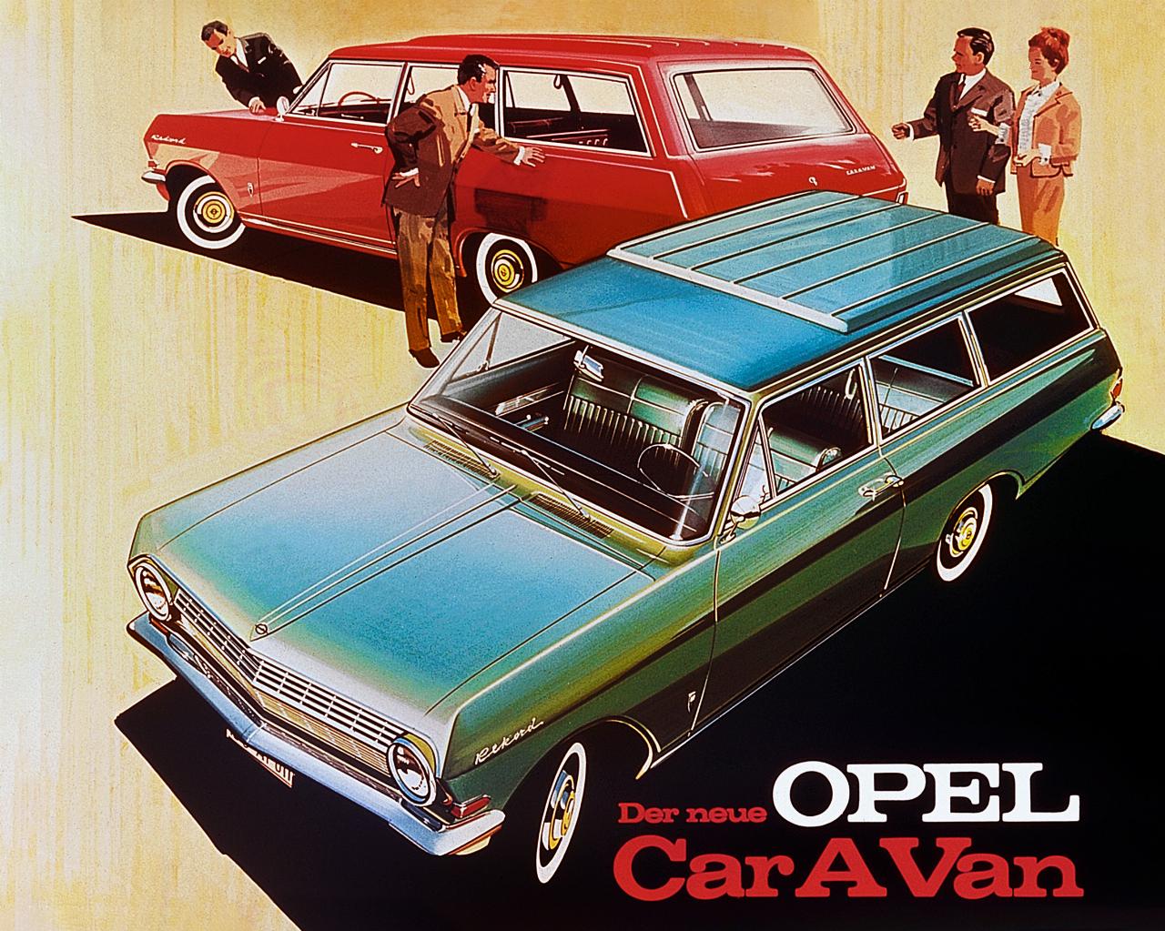 Das damals ab 6830 D-Mark erhältliche Mittelklassemodell war als zwei- und viertürige Limousine mit und ohne Luxusausstattung, als sportliches Coupé sowie als praktischer Kombi Rekord Caravan erhältlich. Das Angebot rundete der dreitürige Schnell-Lieferwagen für den Berufsalltag ab. Die Käufer konnten aus insgesamt 28 verschiedenen – 13 einfarbigen und 15 zweifarbigen – Lackierungen wählen. Zur serienmäßigen Ausrüstung zählen die Opel-Frischluft-Warmwasserheizung, Scheibenwischer, ein – damals nicht selbstverständliches – Zentralschlüsselsystem, mit Kunstleder bezogene Sitze und Deckenbespannung sowie beim Caravan eine Abdeckung des Reserverades im Heck.
