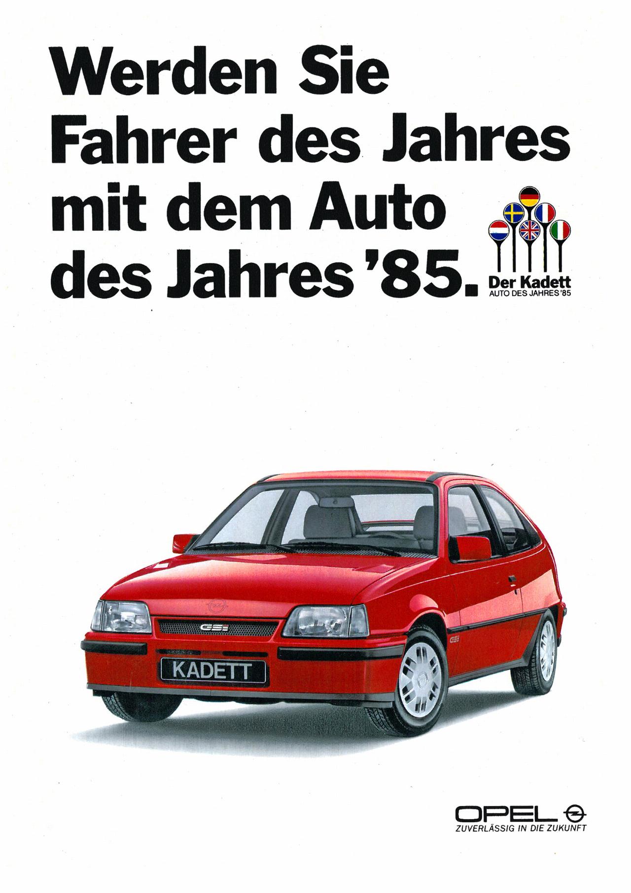 Neben dem „Goldenen Lenkrad 1984“ sicherte sich der nur fünf Jahre nach dem Kadett D erschiene E auch den Titel als „European Car of the Year 1985“. Einen Rekord stellte der Kadett 1984 auch in Sachen Aerodynamik auf. Nach 1200 Stunden Feinschliff im Windkanal erreichte das Modell einen sensationellen cw-Wert von 0,32. Und der sportliche GSi war mit einem Wert von 0,30 und einer Luftwiderstandsfläche von 0,57 Quadratmetern die damals windschlüpfigste Limousine der Welt. Diese Bestwerte erreichten die Opel-Ingenieure unter anderem durch eine konsequente Keilform, einen tropfenförmigen Fahrzeug-Grundriss, geglättete Scheibenebenen und weitere Detaillösungen wie flexible Fugendichtungen der Karosserie. In den Worten des damaligen Direktors der Produktentwicklung Fritz W. Lohr: „Im Verlauf von rund 1200 Windkanalstunden haben unsere Ingenieure und Techniker für den neuen Kadett eine aerodynamische Qualität erzielt, wie sie in dieser Klasse zuvor nicht erreicht wurde. Während der Entwicklungsphase des neuen Kadett waren einige unserer leitenden Ingenieure zuweilen längere Zeit am Tag unauffindbar. Die spätere Erklärung lautete dann meist: ,Tschuldigung, ich war mal eben GSi testen …‘“