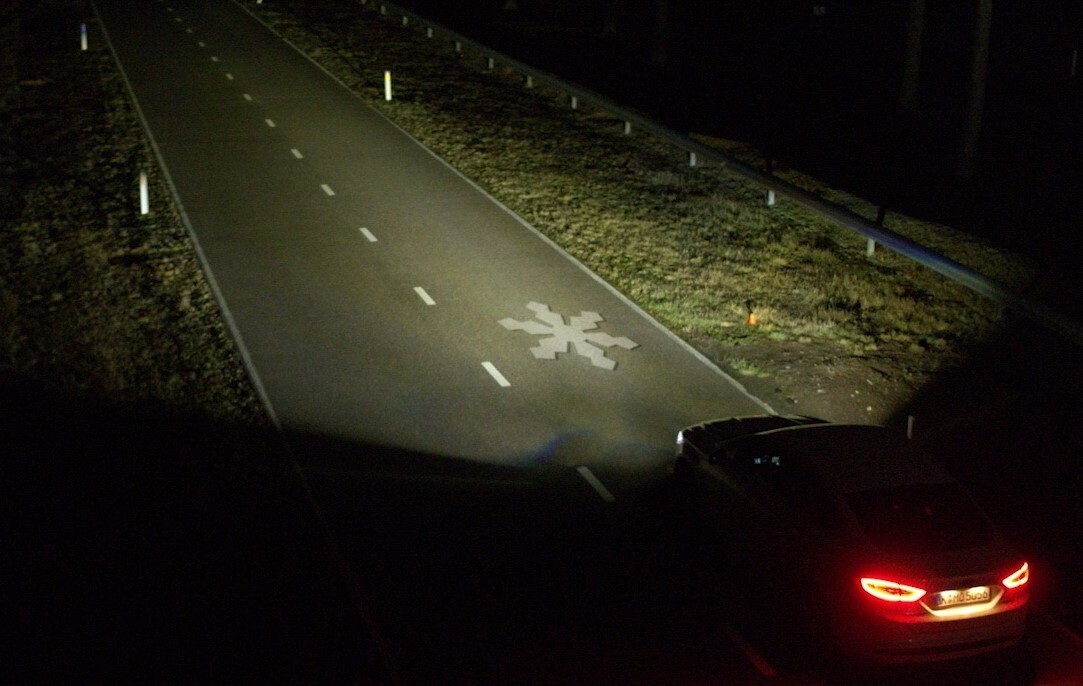 Die Projektionen der hochauflösender Frontscheinwerfer können auch für andere Verkehrsteilnehmer von Vorteil sein. So könnte zum Beispiel ein Zebrastreifen auf der Straße abgebildet werden, der sowohl für den Fahrer als auch für den Fußgänger gut erkennbar ist, selbst wenn die Straßenmarkierungen verblasst sind. Möglich wäre es auch, einem vorausfahrenden Radfahrer zu zeigen, dass und wie man an ihm vorbeizufahren plant.