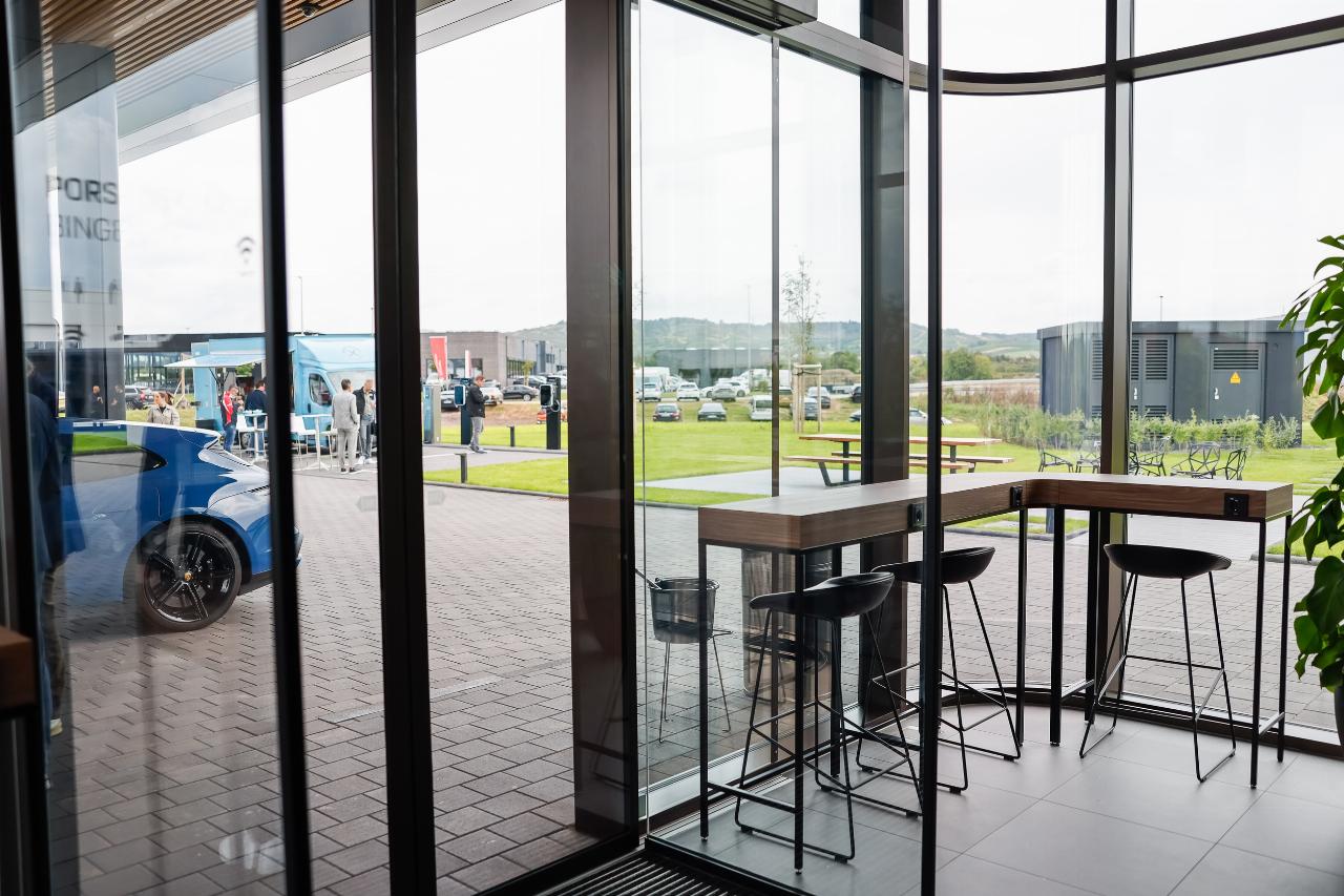 Bingen wurde gewählt, weil sich der Ladepark in unmittelbarer Nähe zur Autobahn 61 befindet, die auch von vielen Belgiern und Niederländern auf dem Weg in den Süden genutzt wird. Außerdem liegt Bingen im Dreieck von Frankfurt, Hockenheimring und Nürburgring. Die Einrichtung der Lounge, in der Getränke und Snacks gekauft werden können, ist bewusst sachlich gestaltet. „Unsere Kunden wollen vor allem schnell reisen“, erklärt ein Porsche-Sprecher.