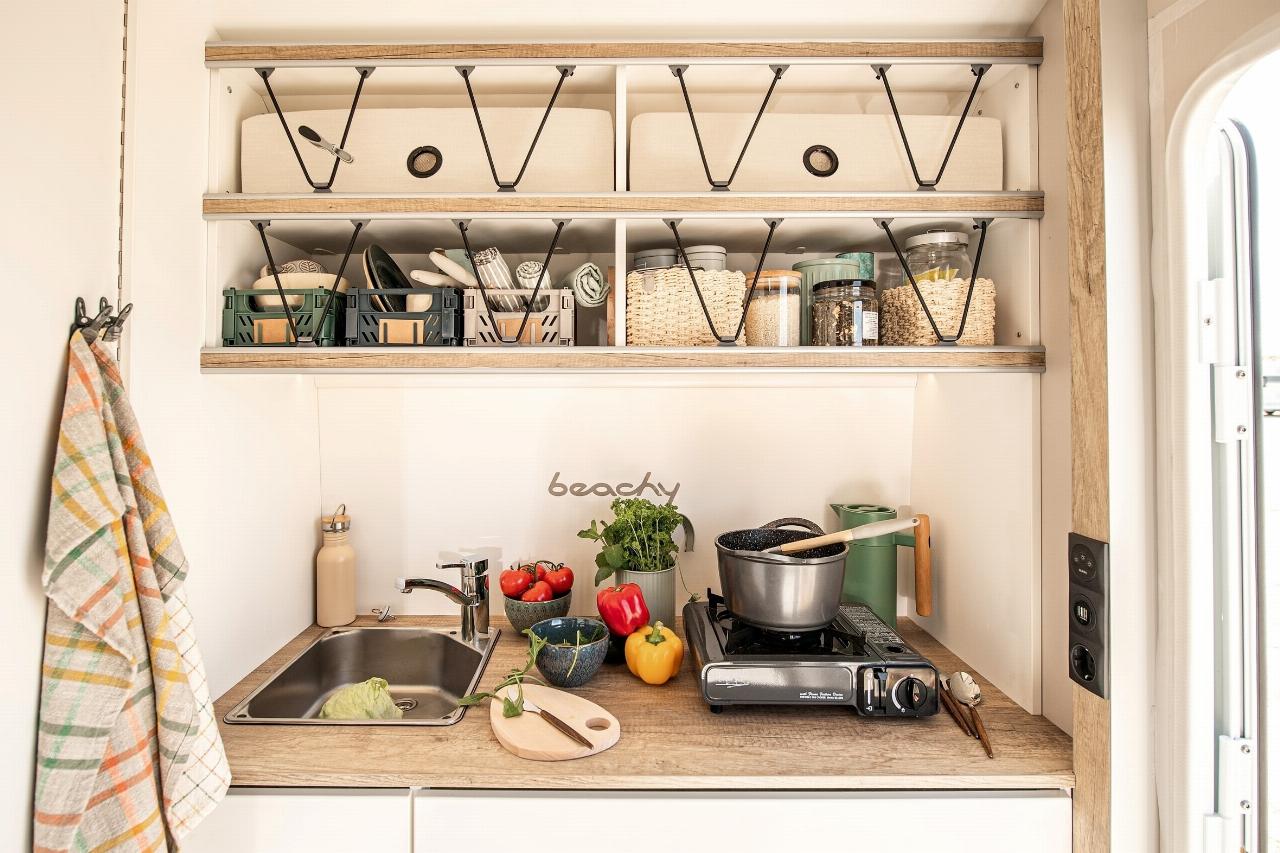 Das Fahrzeug ist in den drei unterschiedlich großen Ausführungen 360, 420 und 450 ab 13.880 Euro erhältlich und bietet in der kleinen und mittleren Version Schlafplätze für zwei Erwachsene und ein Kind; in der großen Ausführung 450 können zwei Kinder übernachten. Noch nicht in der Ausstattung enthalten ist allerdings eine Kochgelegenheit. Diese lässt sich aber ganz einfach nachrüsten. So lässt sich beispielsweise der transportable Gaskocher Camping Kitchen 2 des Herstellers Campingaz mit dem 100-Euro-Gutschein bezahlen. (aum)