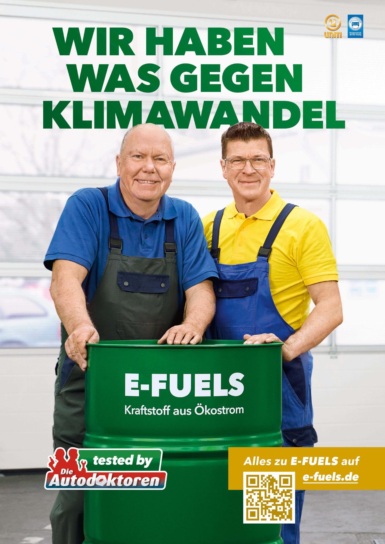 Mit Slogans wie „Wir haben was gegen Klimawandel!“ oder „Wir lieben Autos und das Klima!“ macht die Kampgane auf Plakaten, Aufstellern, Bannern und elektronischen Displays in hunderten Kfz-Betrieben und Tankstellen in Deutschland sowie in Sozialen Medien Autofahrer auf e-Fuels aufmerksam. Die beiden Kölner Kultschrauber haben sich in einem eigenen Langzeittest mit einem VW Golf von den synthetischen Kraftstoffen überzeugt. „E-Fuels können problemlos in allen Autos mit Verbrennungsmotor eingesetzt werden, ohne dass dafür technische Anpassungen notwendig sind. Dass Autos mit Diesel- und Benzinmotor damit einen Beitrag zum Klimaschutz leisten können, finden wir super. Daher setzen wir uns gerne für e-Fuels ein“, betonen Hans-Jürgen Faul und Holger Parsch. In Begleitmedien Begleitmedien von Uniti und ZDK beantworten sie die wichtigsten Fragen zu den CO2--neutralen Kraftstoffen. Auf www.e-fuels.de finden Verbraucher weitere Informationen sowie alle Youtube-Beiträge des Langzeittests der „Autodoktoren“ zu dem Thema.