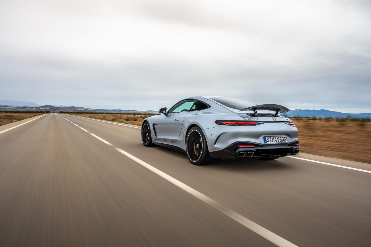 Im AMG GT 55 leistet der Achtzylinder 476 PS (350 kW), im GT 63 steigt die Leistung auf 585 PS (430 kW). Die Mehrleistung wird ausschließlich über die Software herausgeholt und manifestiert sich in überragenden Fahrleistungen: 0-100 km/h in 3,2 versus 3,9 Sekunden, die künstlich abgeregelte Spitze steigt von 295 auf 315 km/h. Auf eine Elektrifizierung verzichtet AMG vollständig. Das spart Gewicht, Komplexität und Kosten – und Fahrer dürfen sich freuen, den offiziellen Zyklusverbrauch (14,1 Liter pro 100 km) im Gegensatz zu Hybridfahrzeugen nicht nur zu erreichen, sondern mit Leichtigkeit sogar zu unterbieten.