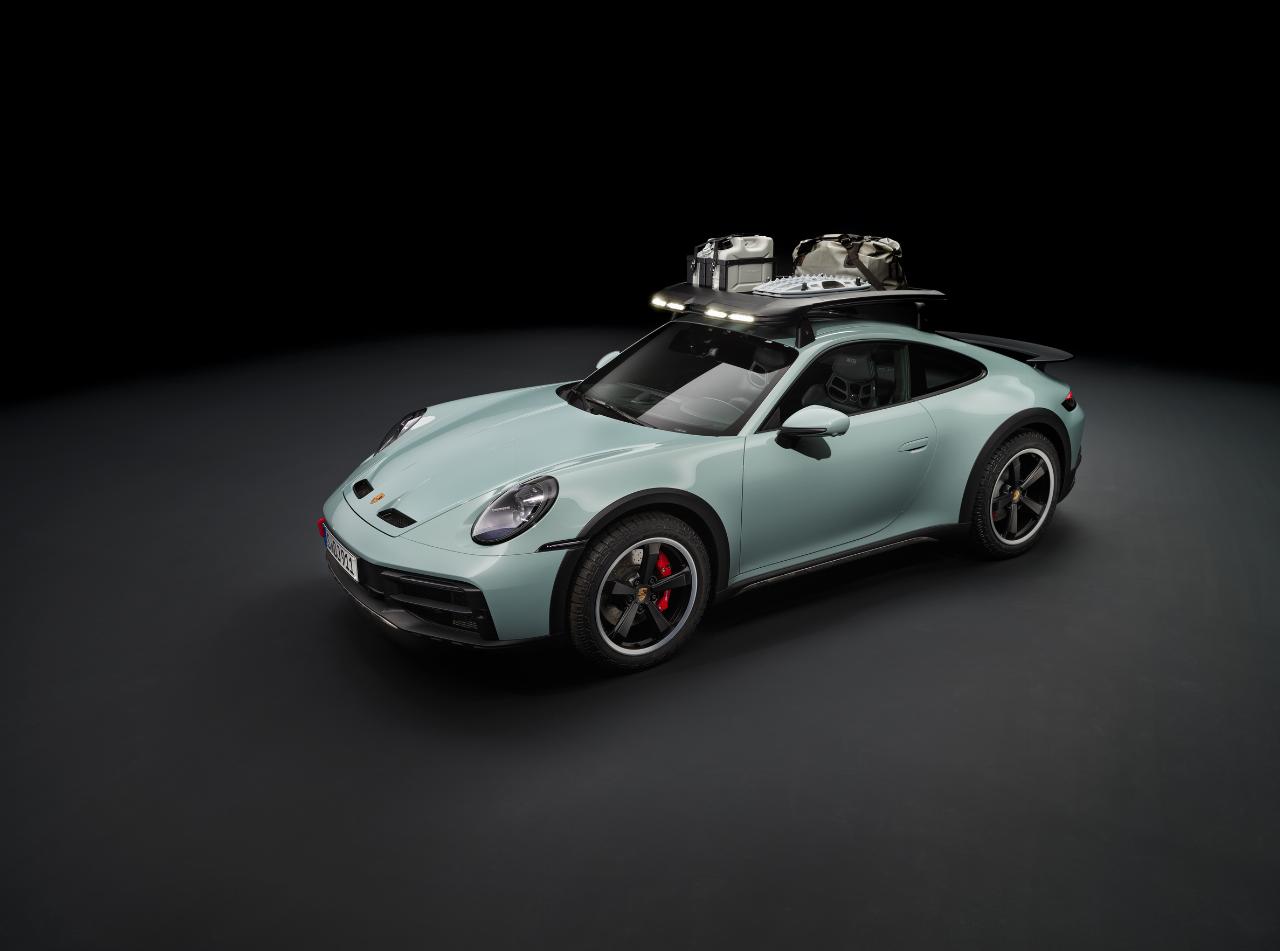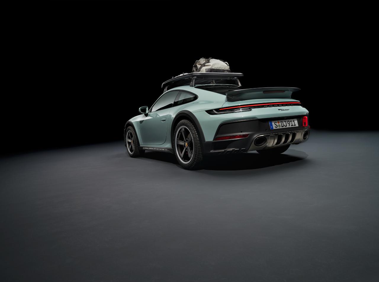 911 Carrera mit Sportfahrwerk. Darüber hinaus kann das serienmäßige Liftsystem den Vorder- und Hinterwagen um weitere 30 Millimeter anheben. Damit erreichen Bodenfreiheit und Rampenwinkel das Niveau klassischer SUV. Das Liftsystem dient nicht nur zum langsamen Überqueren von Hindernissen, sondern ist integraler Bestandteil des neu abgestimmten Fahrwerks. Die Einstellung „Hochniveau“ des Liftsystems funktioniert offroad bis zu einer Geschwindigkeit von 170 km/h, bei mehr Tempo senkt sich das Fahrwerk automatisch wieder ab.