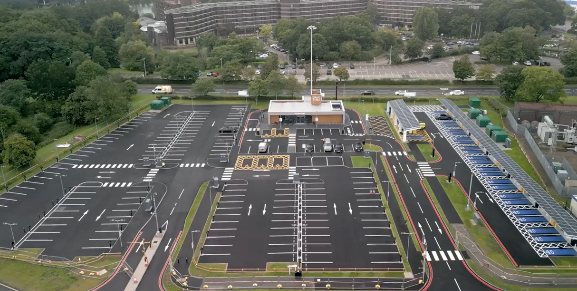 Das vom britischen Finanzminister Jeremy Hunt eröffnete Zentrum im National Exhibition Centre (NEC) in Birmingham umfasst 180 Ladepunkte, darunter 16 300-kW-Gleichstrom-Schnellladegeräte für 30 Ladebuchten sowie 150 7-kW-Wechselstrom-Ladepunkte. Die Anlage wird mit erneuerbaren Energiequellen betrieben, dazu zählt eine Bedachung mit Solaranlage.
