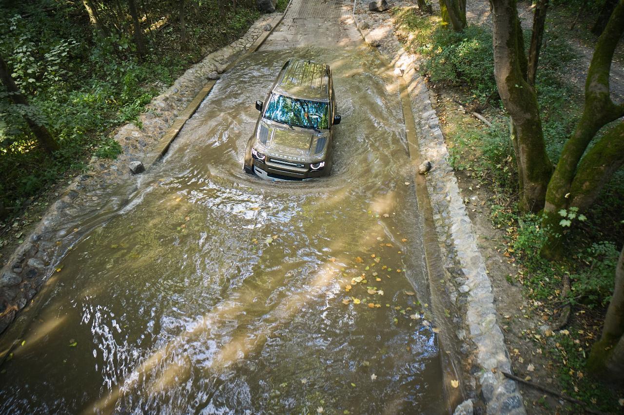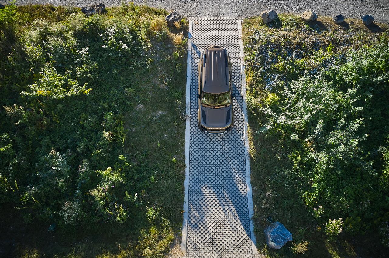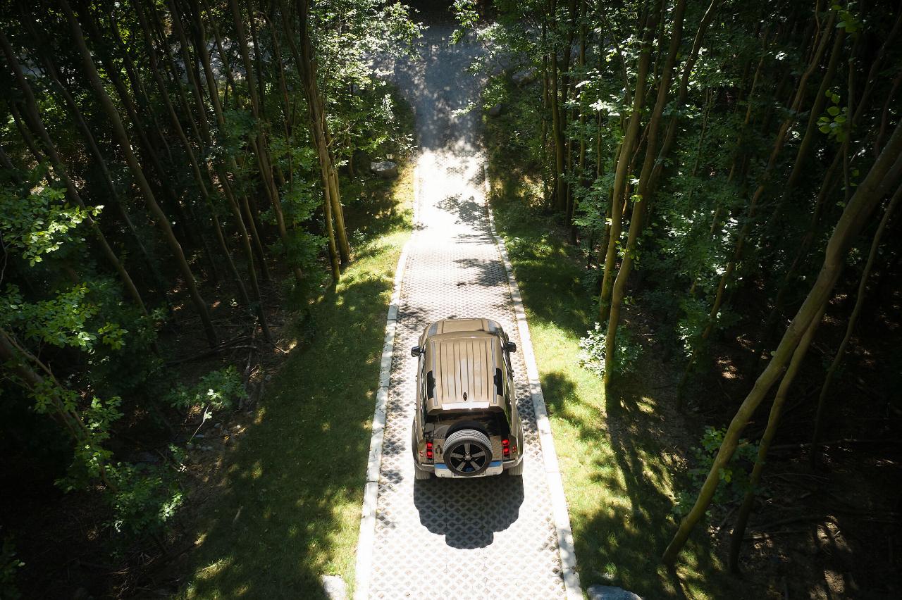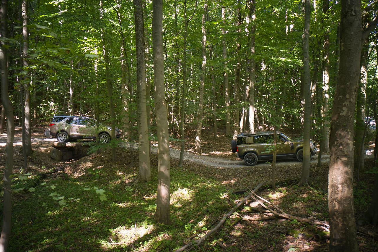 Statt der bisherigen zwölf stehen nun knapp 17 Hektar zur Verfügung, was in etwa 22 Fußballfeldern entspricht. In ganz Europa gibt es kein größeres Land Rover Experience Center. Auf der insgesamt 5,6 Kilometer langen Strecke durchs Gelände warten aktuell 25 Hindernisse und weitere sollen folgen. Alle sind zum größten Teil natürlichen Ursprungs oder nachträglich errichtet und behutsam in die Natur eingebettet. „Dabei haben wir darauf geachtet, dass wir den Boden so gut wie nie berühren“, sagt Dag Rogge. Soll heißen: Alle Hindernisse liegen auf einem Geo-Textil und Kalksteinschotter aus dem angrenzenden Steinbruch und grenzen sich mit stabilisierenden Rasengittersteinen sauber gegenüber der Umgebung ab. Diese Konstruktion verschont – anders als bei rein naturbelassenen Hindernissen – den Untergrund vor dauerhaften Einträgen, Spurrinnen oder Auswaschungen, selbst wenn tagtäglich hunderte Geländewagen drüberfahren. Und: „Sollten wir irgendwann beschließen, hier wieder raus zu gehen, könnten wir alles zurückbauen und den Rest erle.“