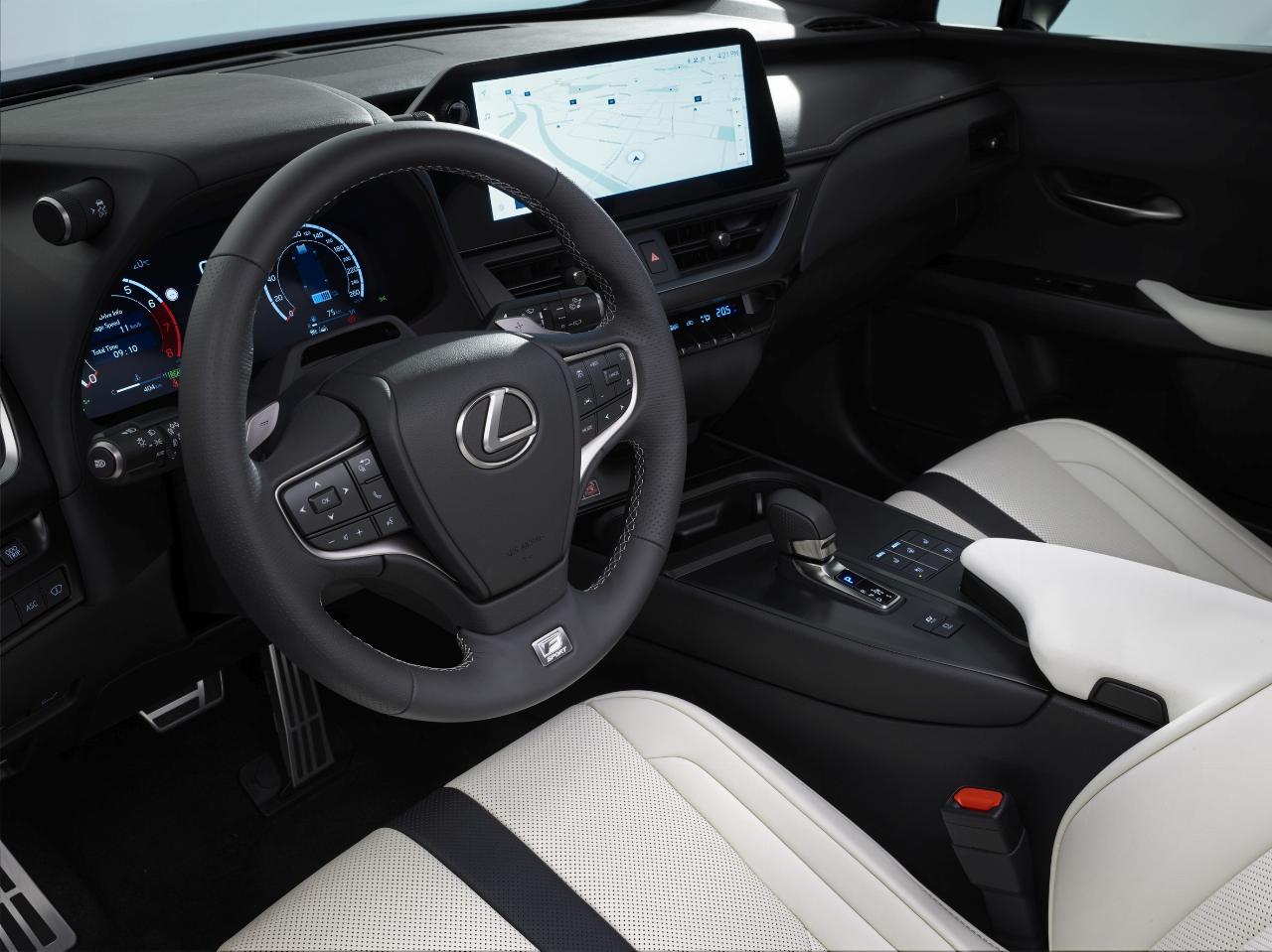Der Lexus UX mit Frontantrieb beschleunigt in 8,1 Sekunden von 0 auf 100 km/h, beim Allradmodell verkürzt sich die Spurtzeit gegenüber dem Vorgängermodell um 0,8 auf 7,9 Sekunden. Im Zentrum des Cockpits findet sich für die Einstiegsversion ein überarbeitetes, acht Zoll großes Multiinformationsdisplay. Ab der Executive Line wächst das volldigitale Display auf 12,3 Zoll. Neben der neuen Innenraumfarbe Pergamonweiß können sich Kunden auch für ein lederfreies Interieurpaket mit Stoff- oder Tahara-Kunstledersitzen sowie Kunstlederbezug an Schaltknauf und dem beheizbaren Lenkrad entscheiden. Eine Kamera auf der Lenksäule überwacht die Aufmerksamkeit des Fahrers.