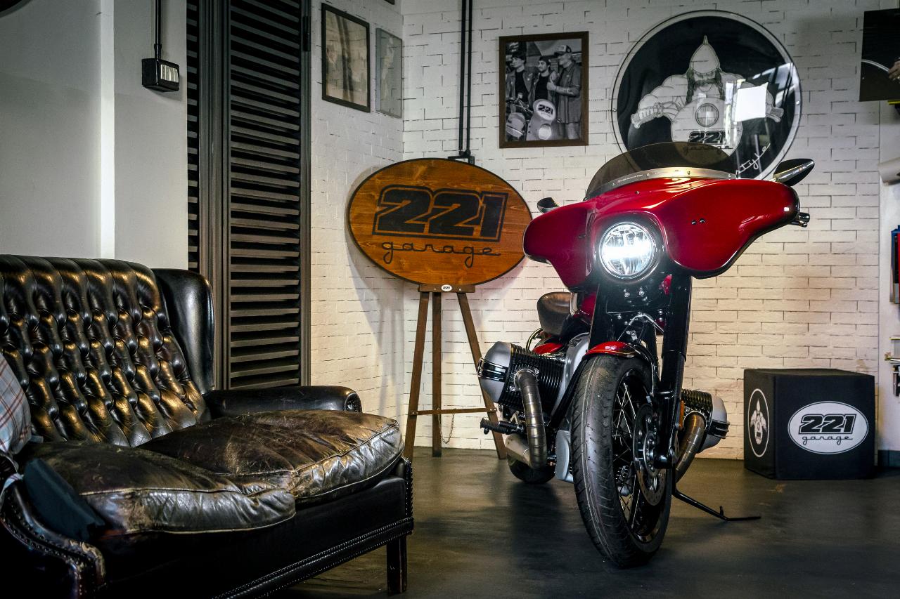 Die R 18 M ist von der Motorsporthistorie der Marke inspiriert und zeigt die typischen Farben Blau, Weiß und Rot. Die Aurora orientiert sich an älteren Cruisern. Garage 221 griff dabei unter anderem auf die Sitzbank einer BMW R 1200 C aus dem Jahre 2005, Blinkerhalter einer R 100 von 1982 und einem Teil des Heckrahmens einer K 75 von 1991 zurück, die ummodelliert wurden. Für die Lackierung der Karosserieteile wurde auf den Farbcode einer BMW R 100 RT von 1983 zurückgegriffen. Der Ölkühlergrill ist von BMW-Automobilen der Sechziger inspiriert. (aum)