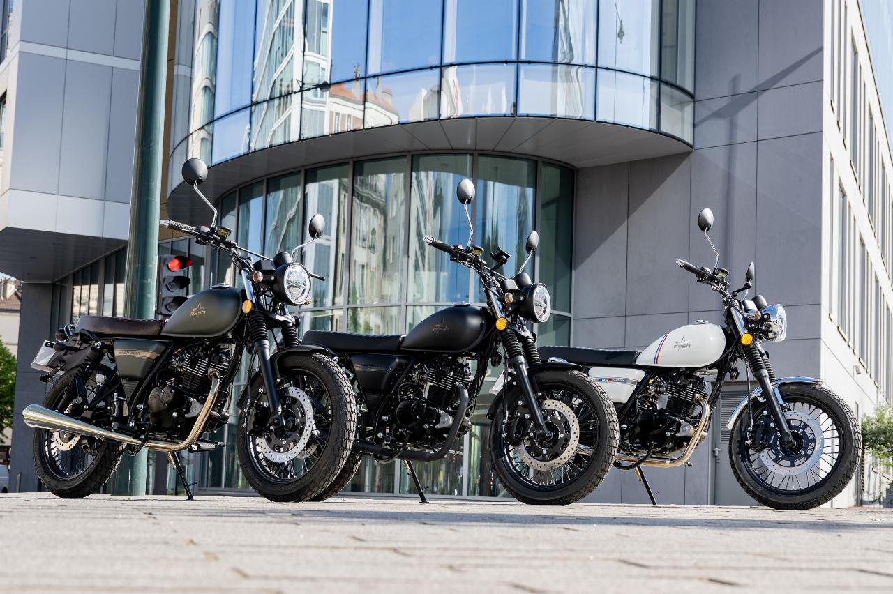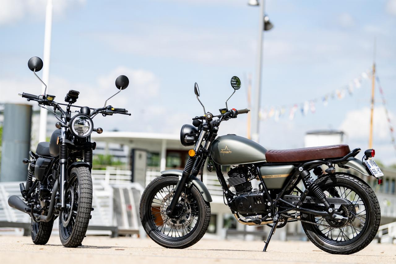 Mash hat die Seventy im Detail verfeinert. Das Leichtkraftrad erhält einen LED-Scheinwerfer, eine komfortablere Sitzbank mit gesticktem Marken-Logo und ein neues analoges Rundinstrument. Mit Ausnahme der schwarzen Ausführung wird künftig ein Edelstahlauspuff montiert. Mash gewährt unverändert drei Jahre Garantie ohne Kilometerbegrenzung und bietet die luftgekühlte Seventy mit ihren elf PS (acht kW) für 2761 Euro an (Österreich: 2850 Euro). (aum)