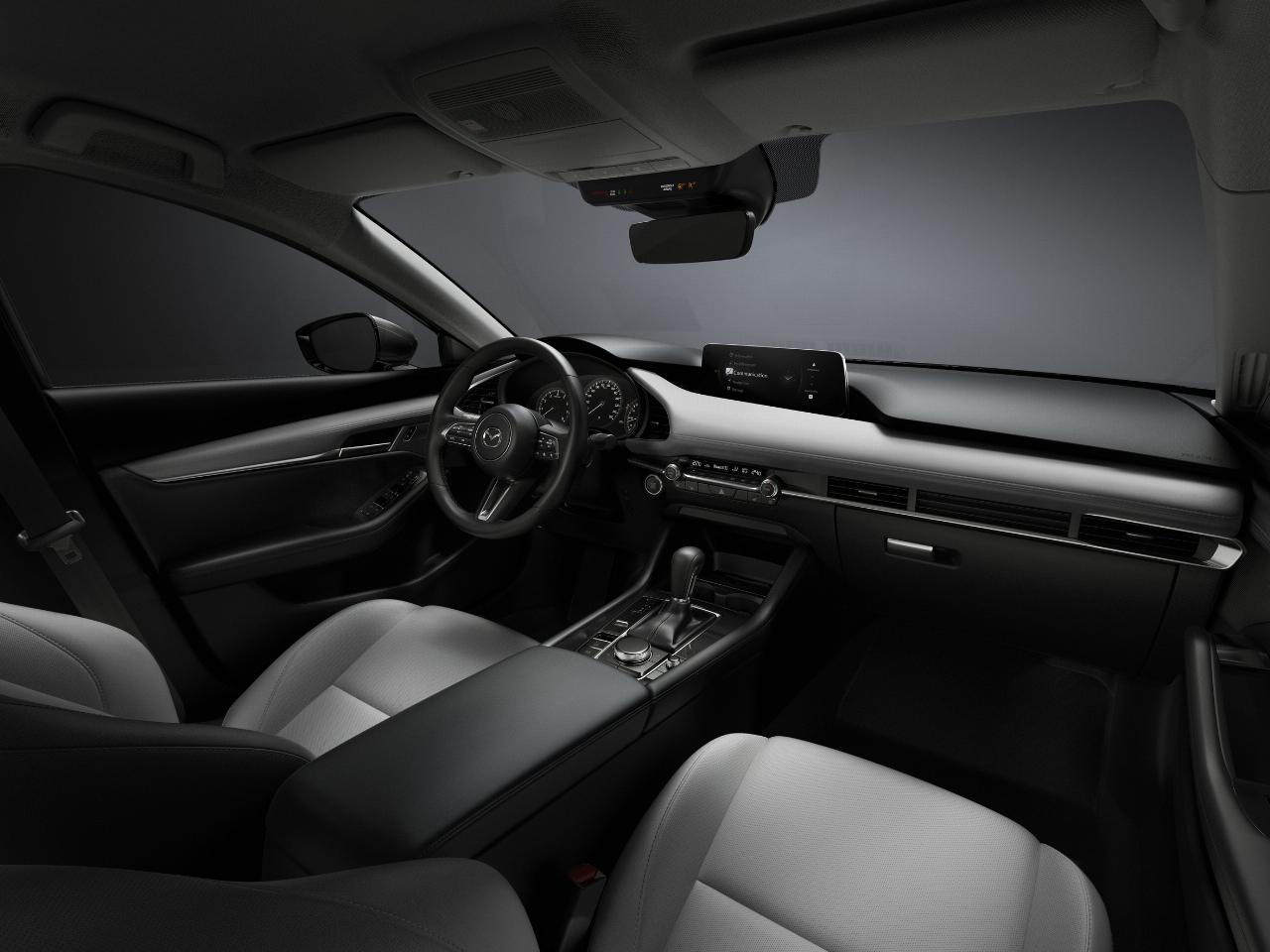 Der Aufmerksamkeitsassistent des Mazda 3 erkennt jetzt auch, wenn der Fahrer abgelenkt ist. Die erweiterte Stauassistenzfunktion (CTS) hält das Fahrzeug nun bis zu einer Geschwindigkeit von 150 km/h automatisch in der Fahrspur. Bei Modellen mit Automatikgetriebe regelt die adaptive Geschwindigkeitsregelung den Abstand und bremst wenn nötig bis zum Fahrzeugstillstand ab. Optimiert wurde zudem der Notbremsassistent, der Fußgänger und Zweiradfahrer bei Dämmerung und Dunkelheit besser erkennt.