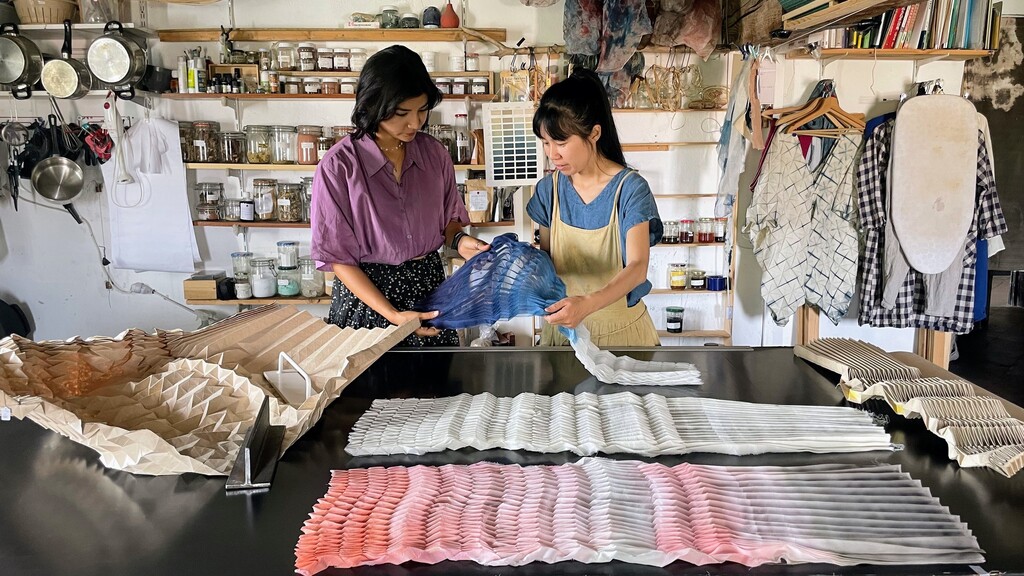 In Marseille betreut Harumi Sugiura, die japanische Meisterin des Textilplissierens, die italienisch-kolumbianische Stipendiatin Marcella Giannini, die sich auf Papier- und Textilkunst spezialisiert hat. In London wird die japanische Papierskulpturenkünstlerin Kuniko Maeda mit der Stipendiatin Momoka Ienaga, einer Spezialistin für Kaga-Stickerei, zusammenarbeiten, die Papierkunst mit traditionellen japanischen Textildesigntechniken verbinden. (aum)