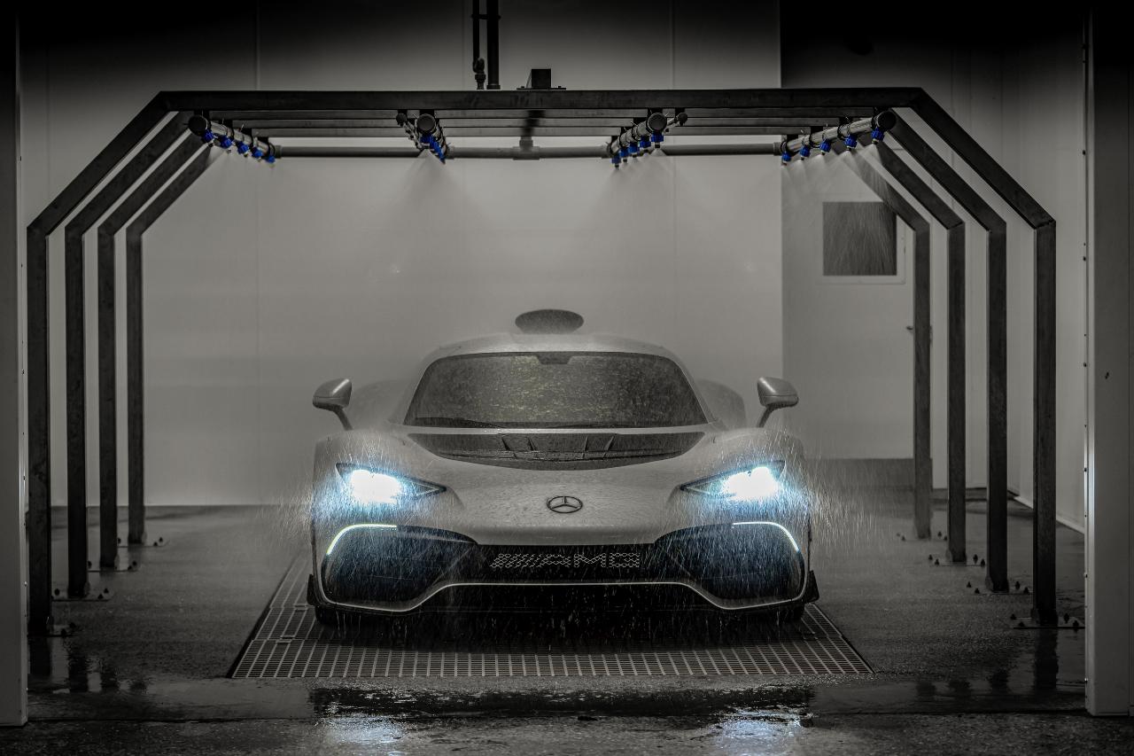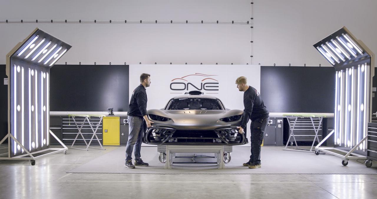 Die Montage erfolgt in Handarbeit an insgesamt 16 Stationen. Am Ende nimmt ein Werkstestfahrer jeden Wagen auf einem nahegelegenen Versuchsgelände ab. Nach der Freigabe wird jeder One mit einem Transportschutz in einem geschlossenen Lkw in die Mercedes‑AMG Zentrale nach Affalterbach gebracht. Dort werden die Kunden vor der Fahrzeugübergabe in die Technik des Hypercars eingewiesen. Die ersten Auslieferungen erfolgen noch in diesem Jahr. (aum)
